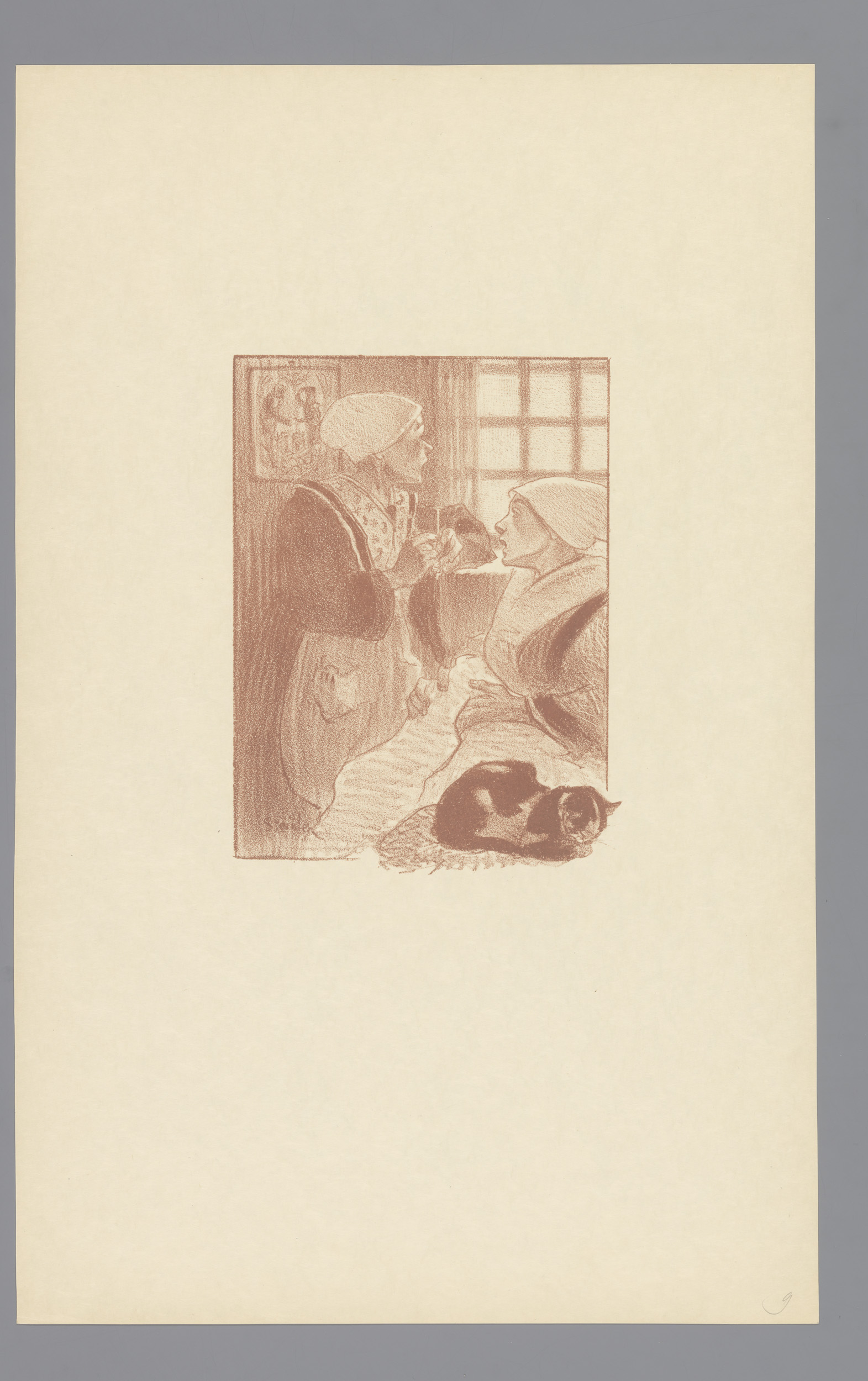 Vrouwen rondom tafel en zes scènes uit dagelijks leven