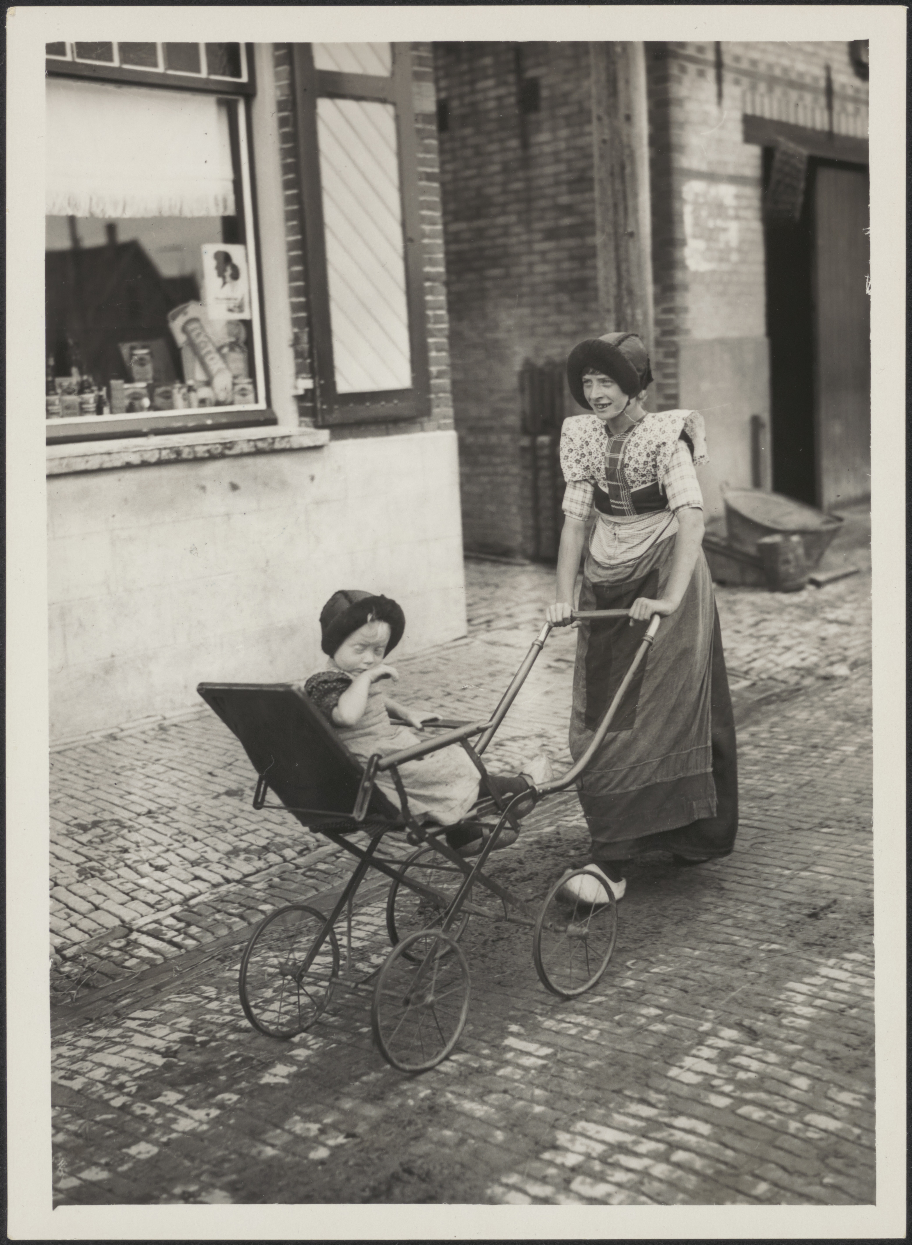 Vrouw met kind in de wandelwagen in Spakenburg