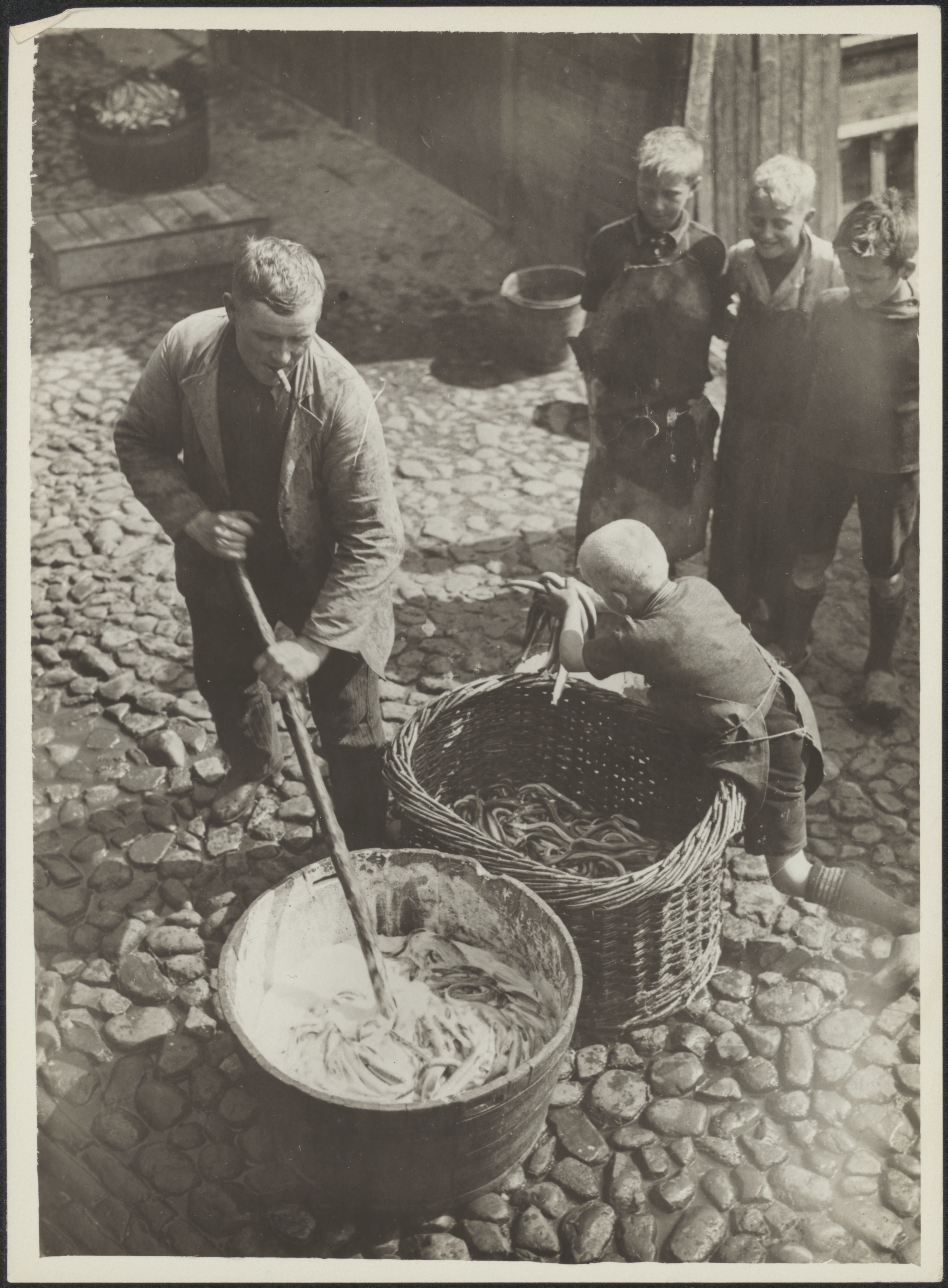 Het schoonmaken van ansjovis te Stavoren
