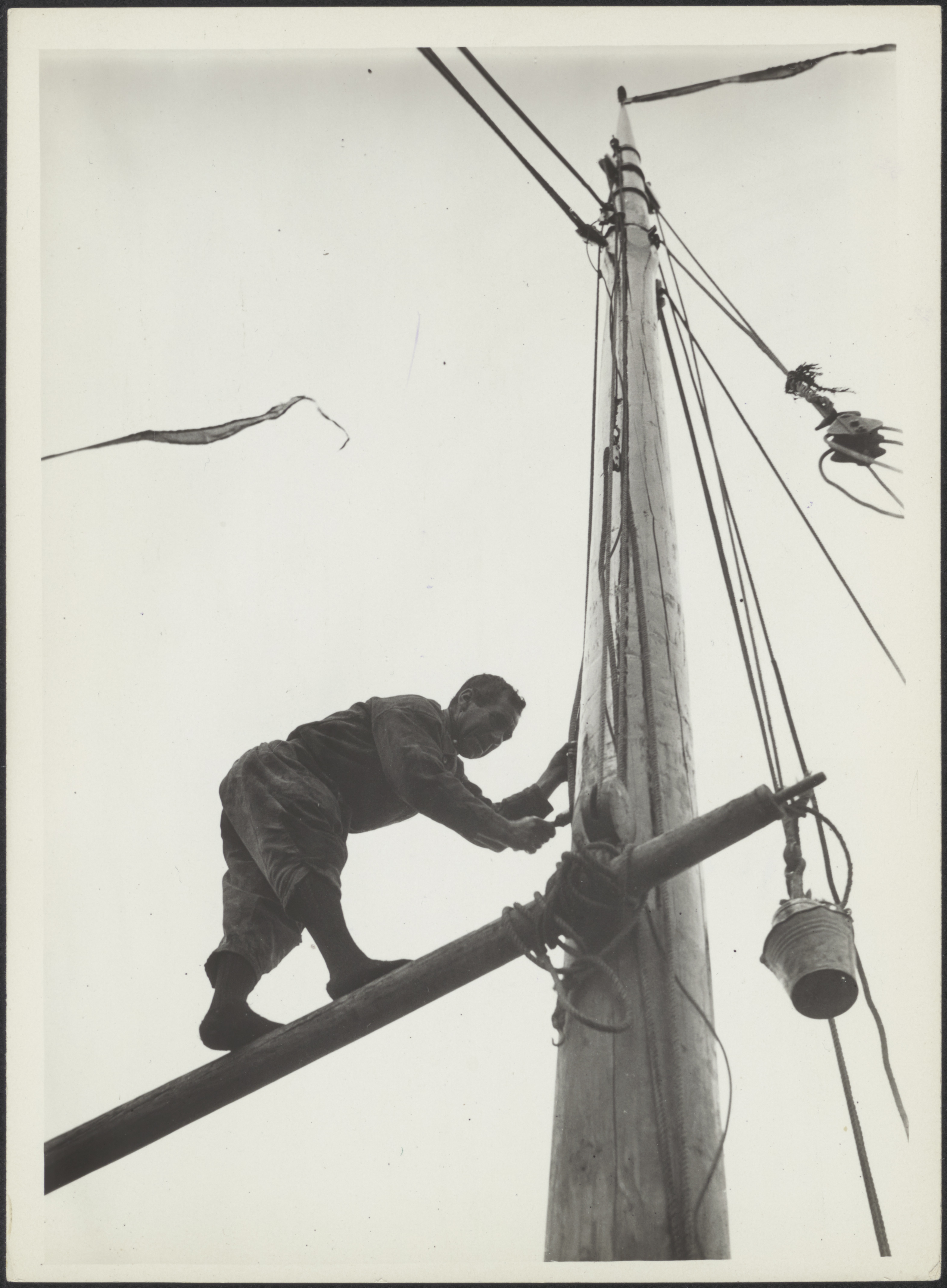 Man die een mast aan het schilderen is