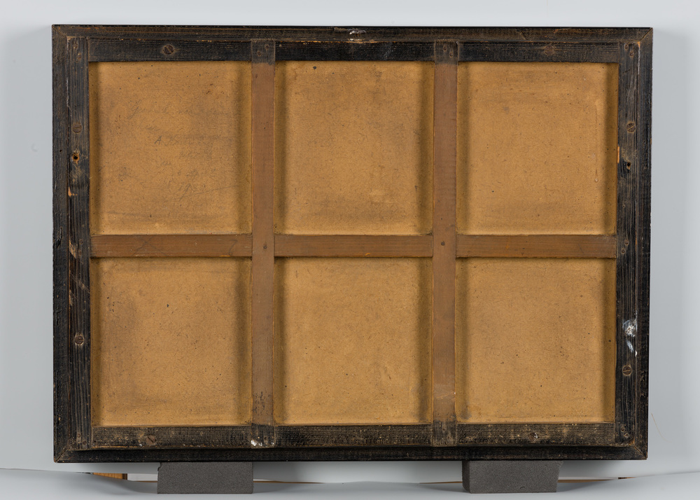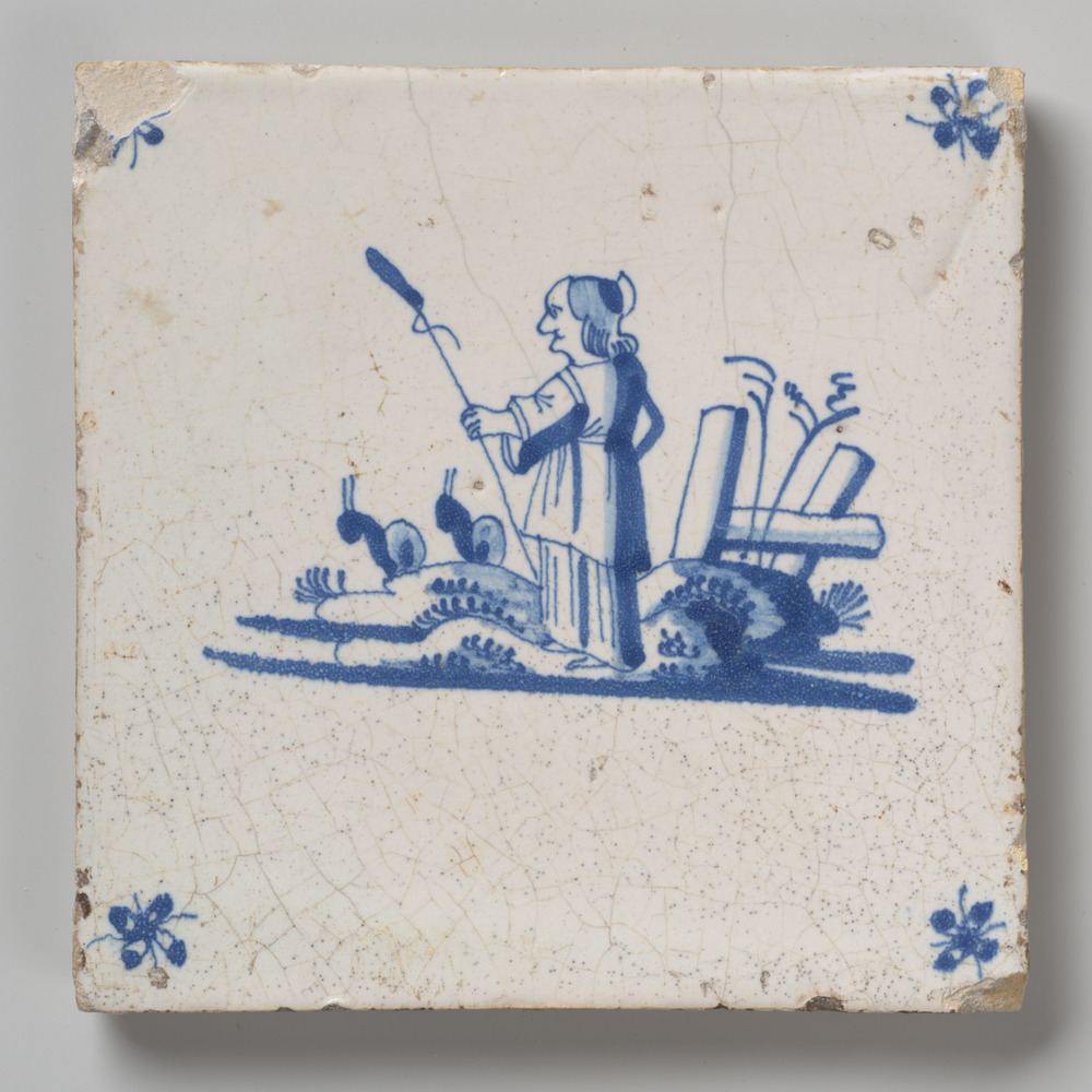 Tegeltableau van keramiek met tinglazuur, voorstelle...