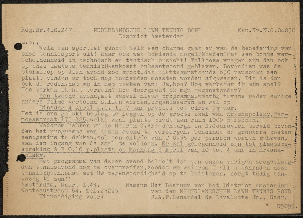 Nederlandsche Lawn Tennis Bond Amsterdam