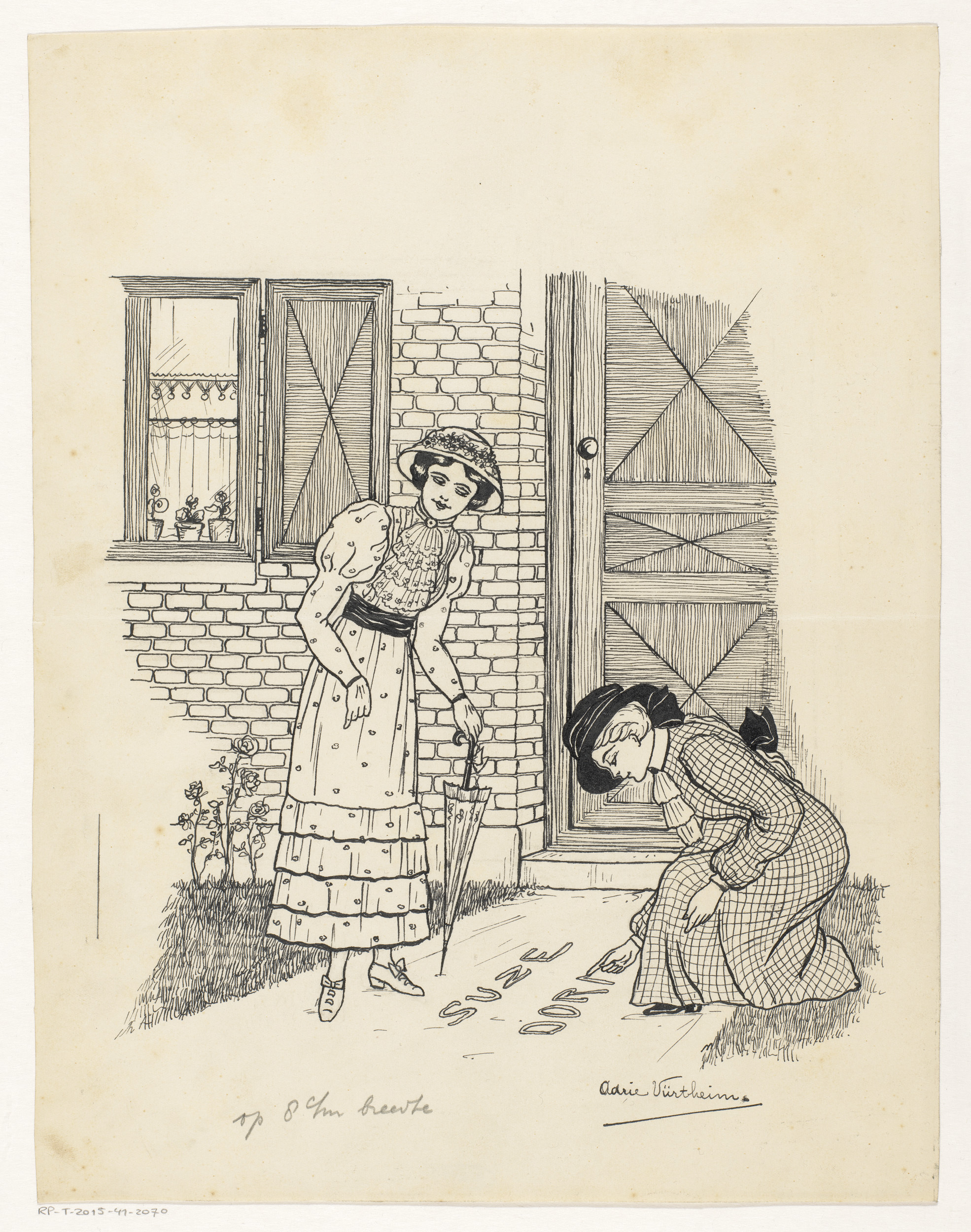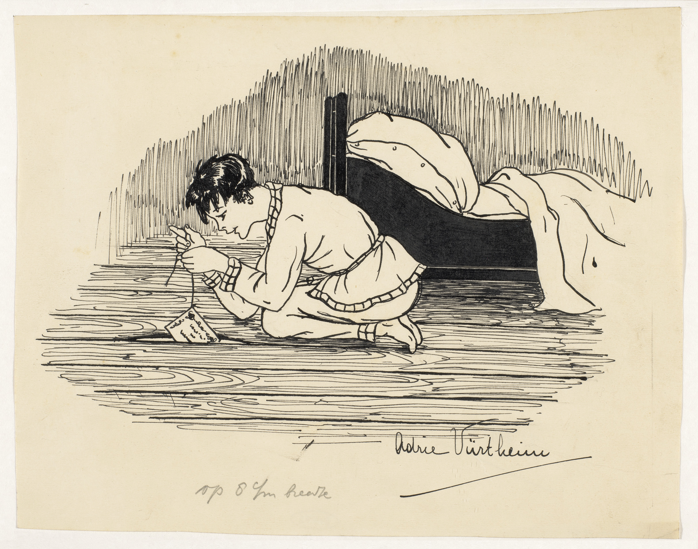Meisje laat een brief tussen twee vloerplanken zakken