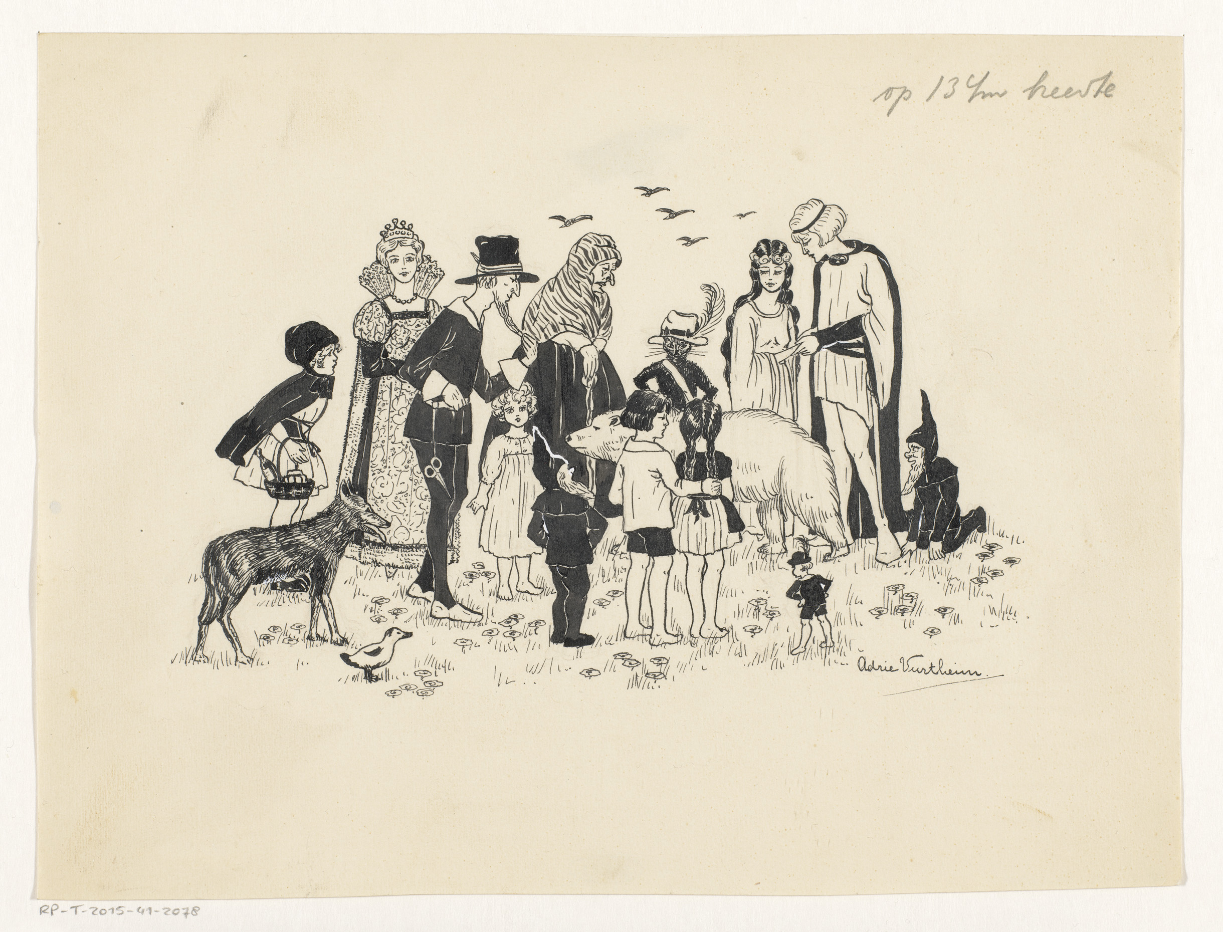Sprookjesfiguren bekijken een ijsbeer