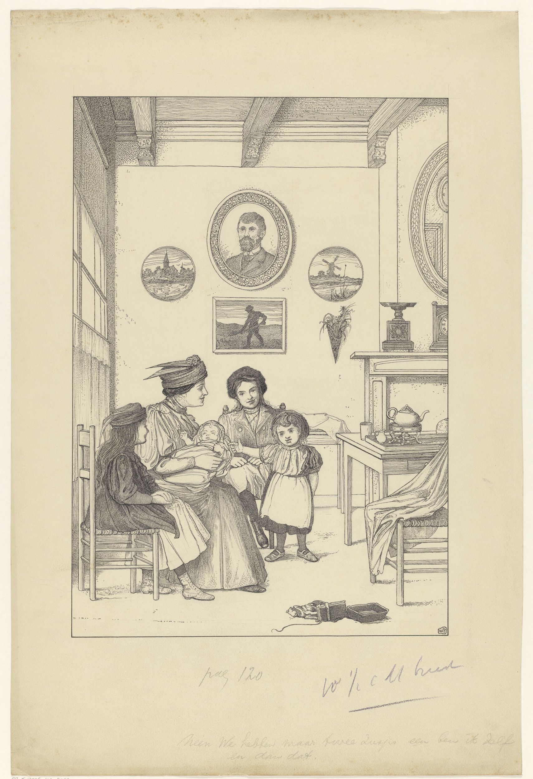 Man, vrouwen en kinderen in een zitkamer