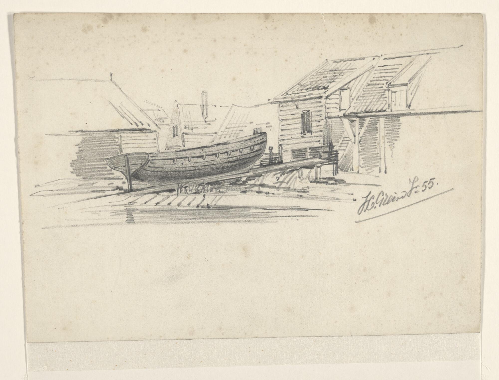 Een sloep op een helling