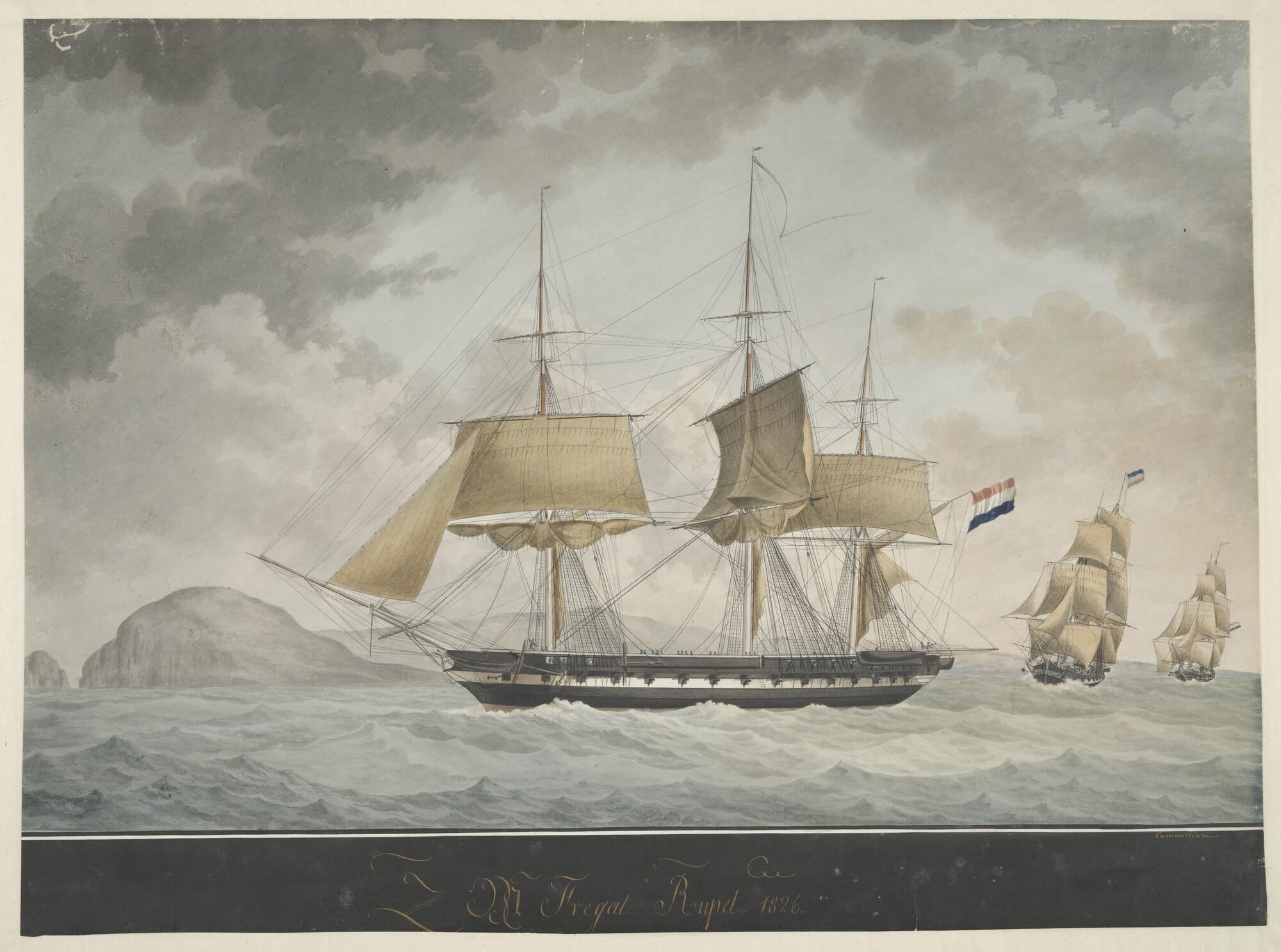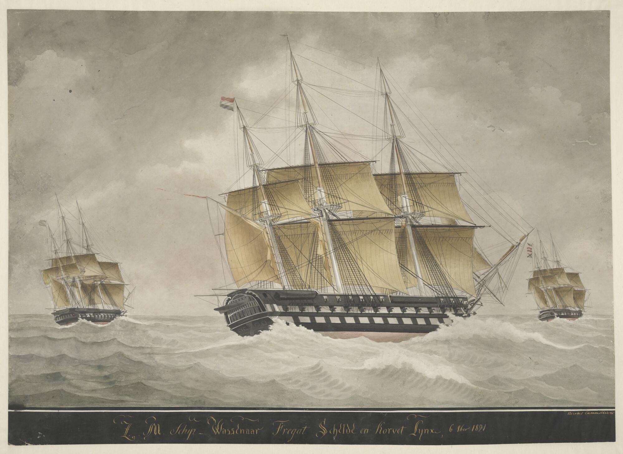Het linieschip Zr.Ms. Wassenaar en het fregat Zr.Ms....