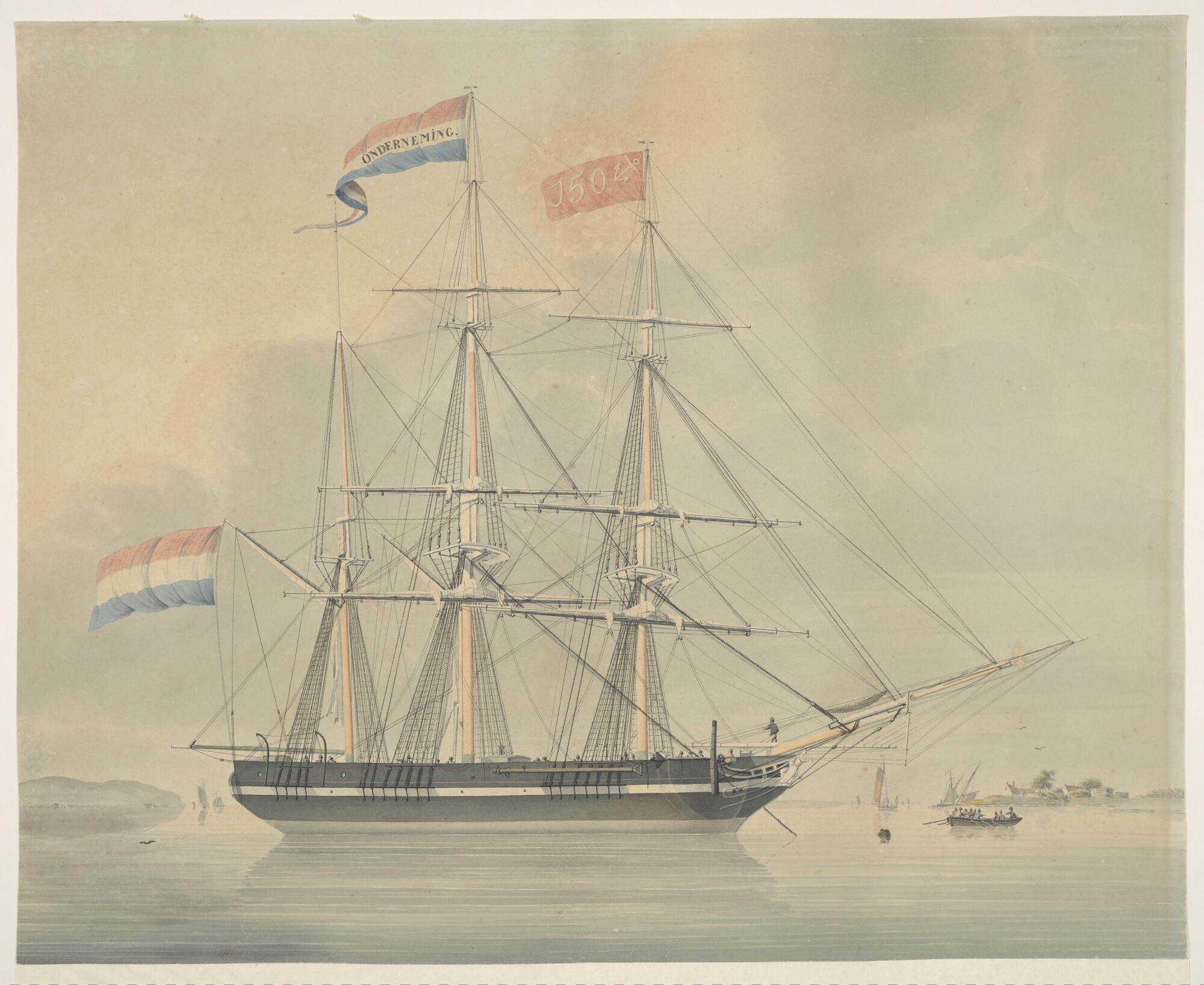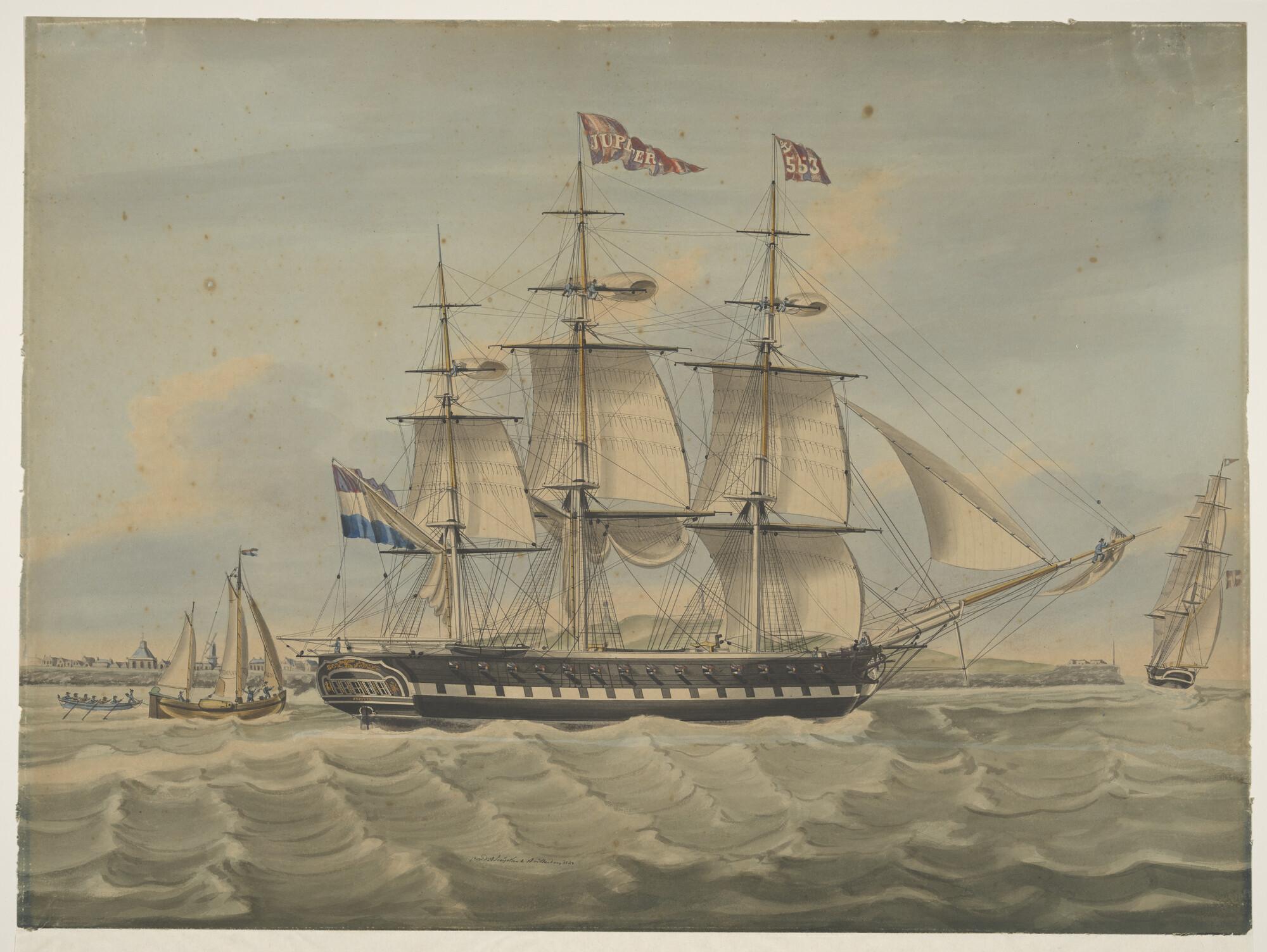 Het fregatschip 'Jupiter' het zeegat van Texel uitva...