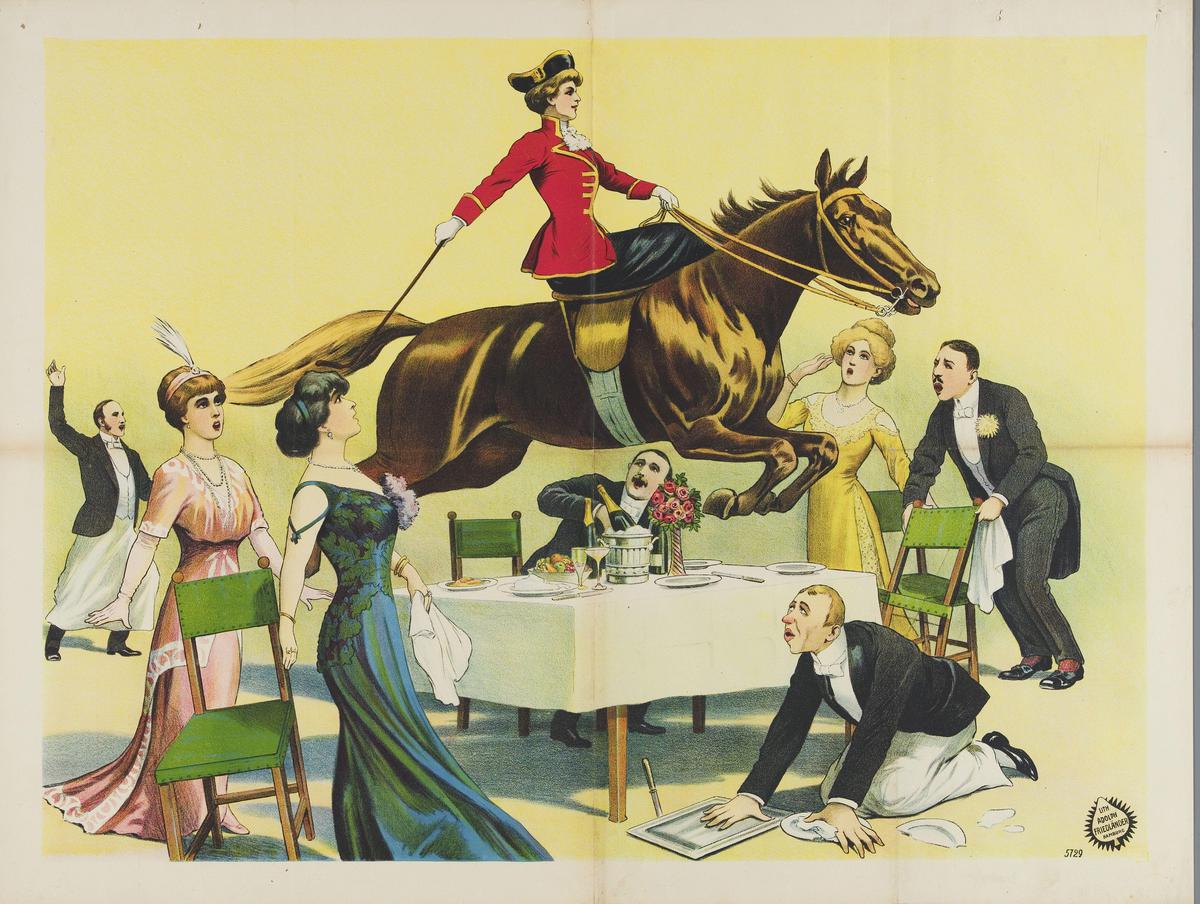 Amazone springend over gedekte tafel
