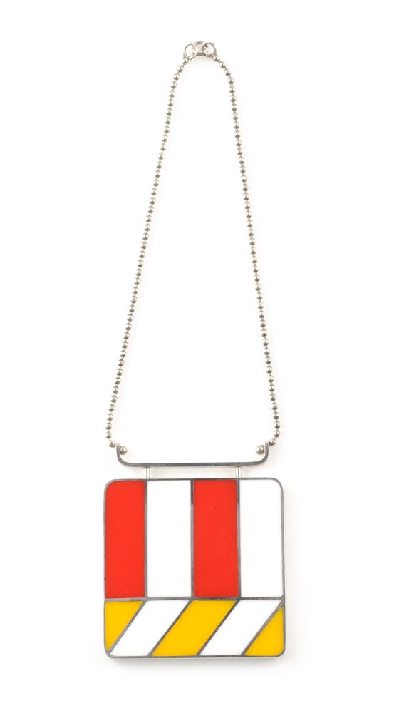 Halssieraad met hanger van rood, wit en geel acrylaat