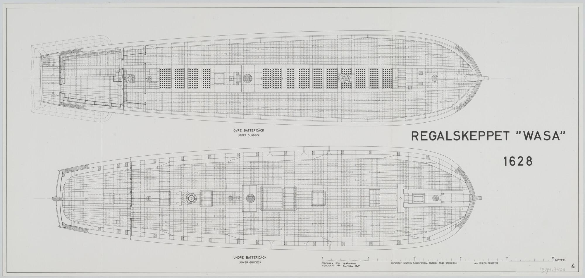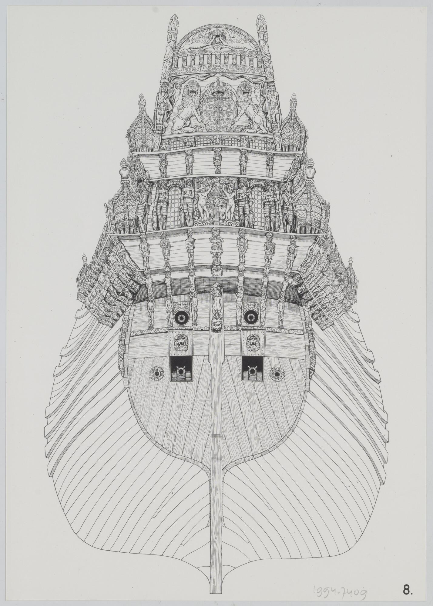 Horizontale langsdoorsnede van het Zweedse oorlogssc...