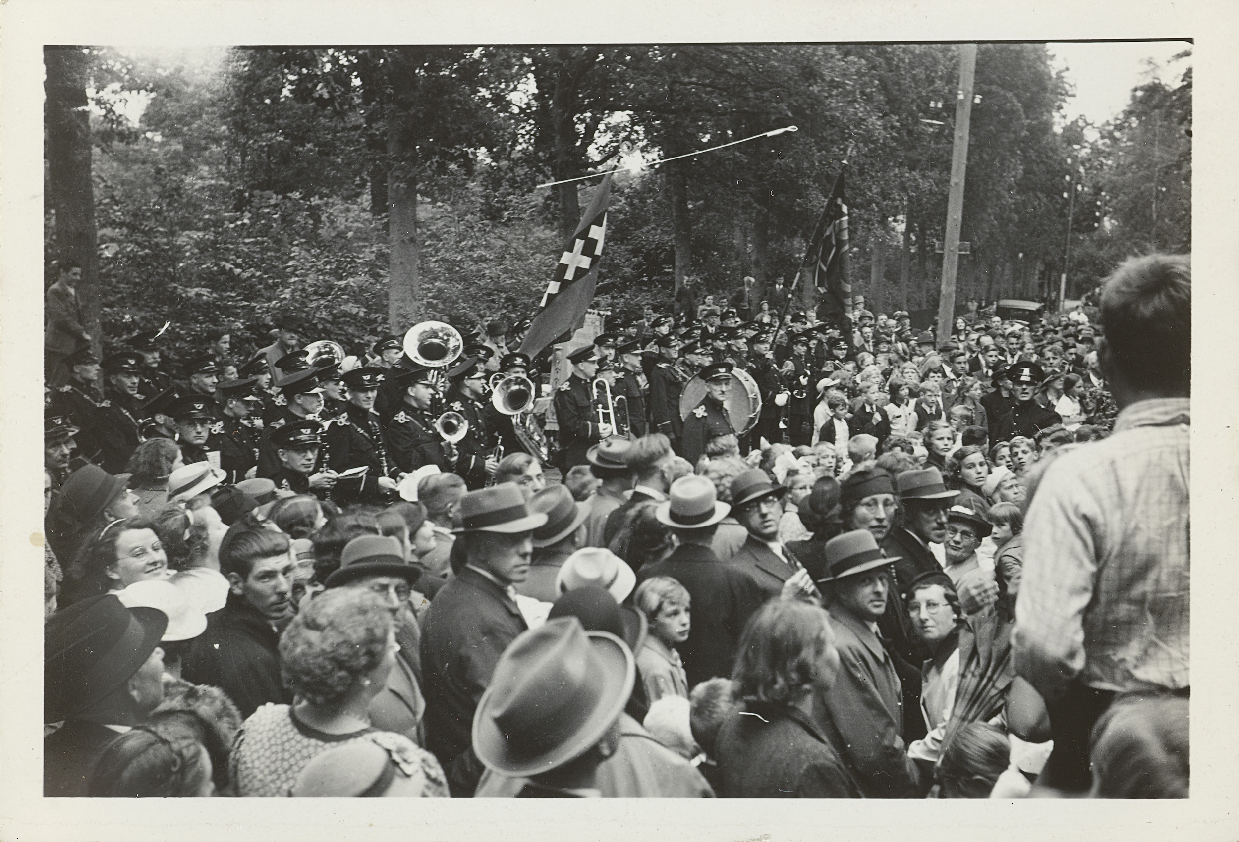 Amsterdamsche Postharmonie temidden van het publiek