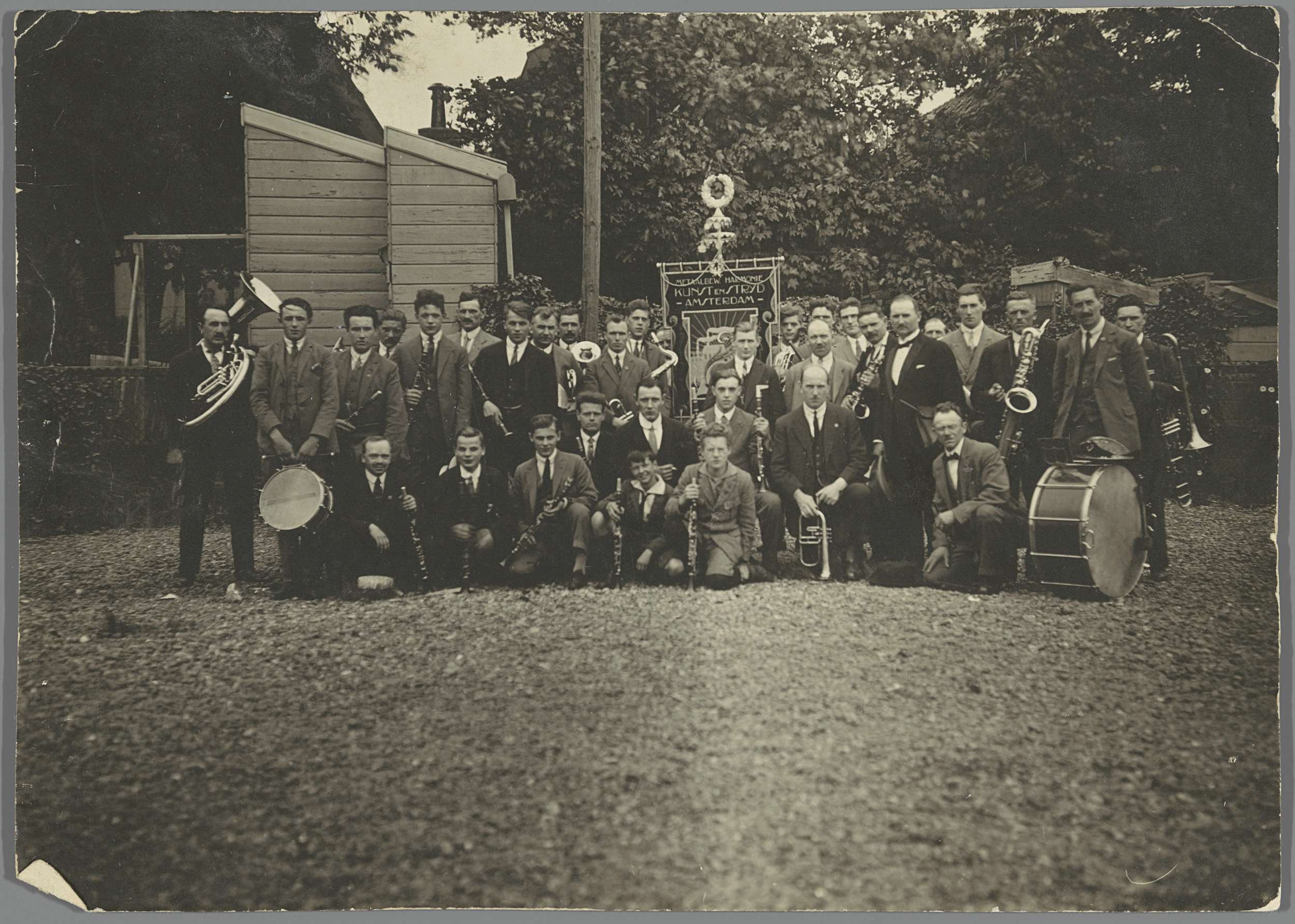 Groepsportret van muziekvereniging 'Kunst en strijd'...