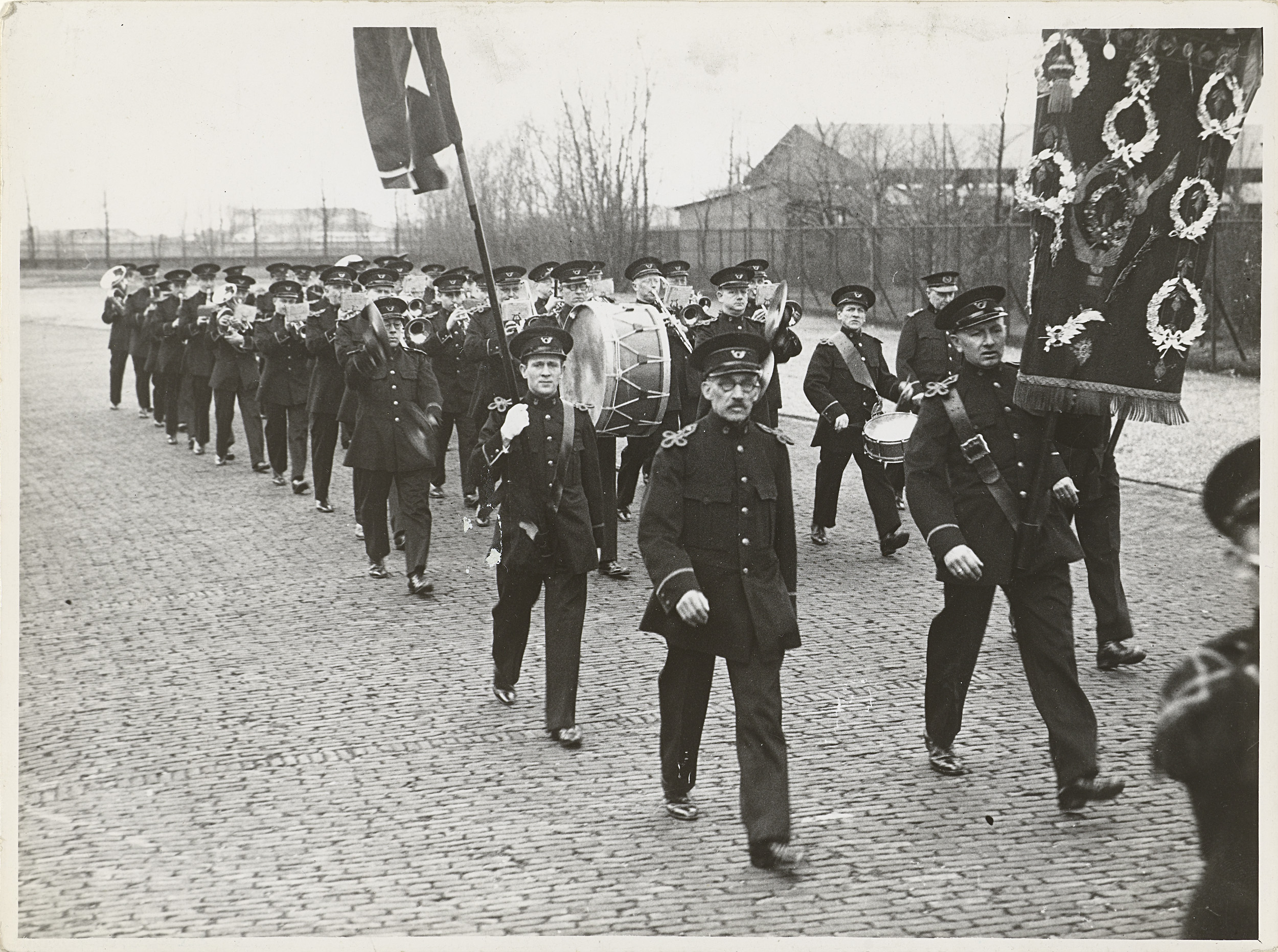 Amsterdamsche Postharmonie in mars op straat
