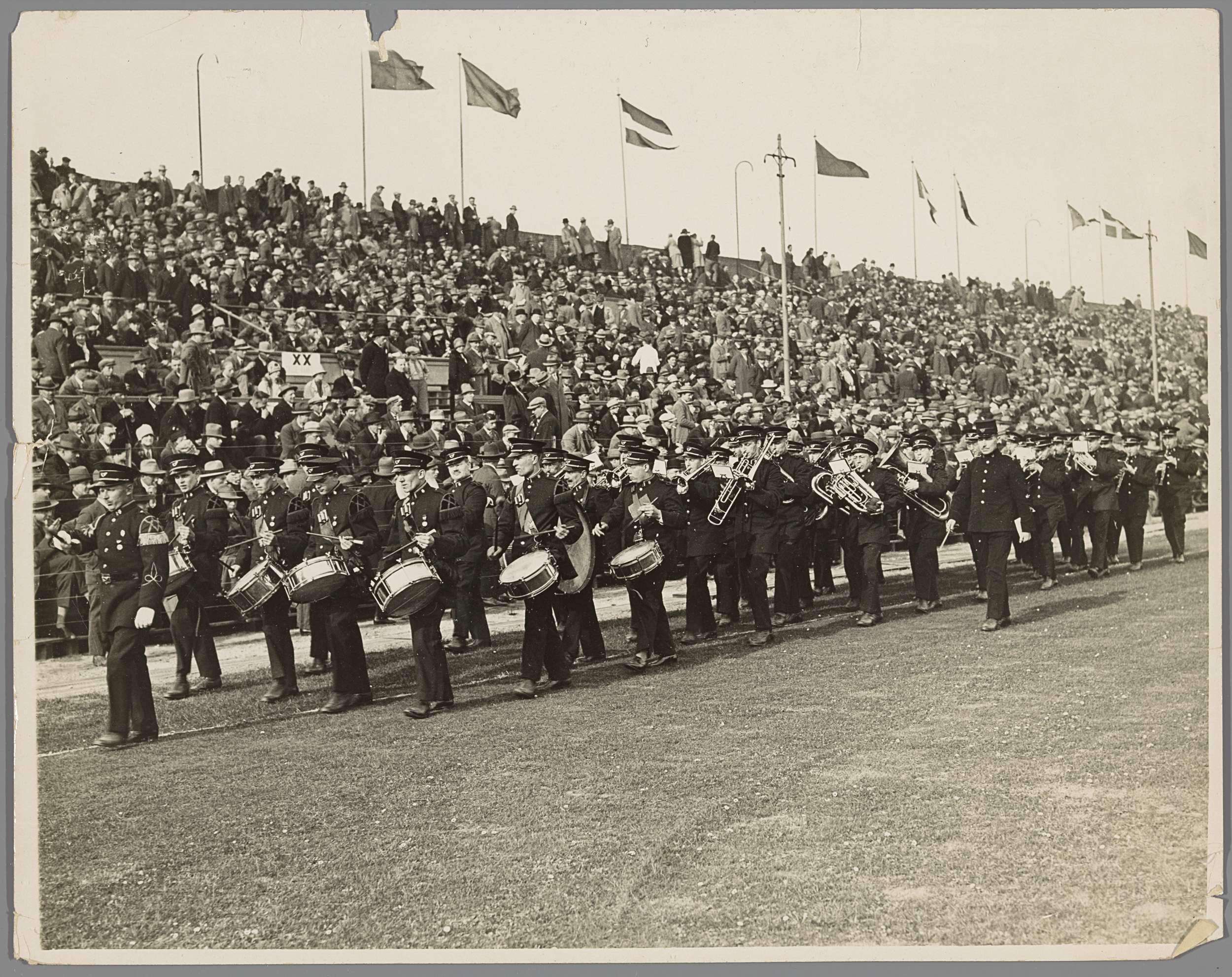 Amsterdamsche Postharmonie in een vol stadion