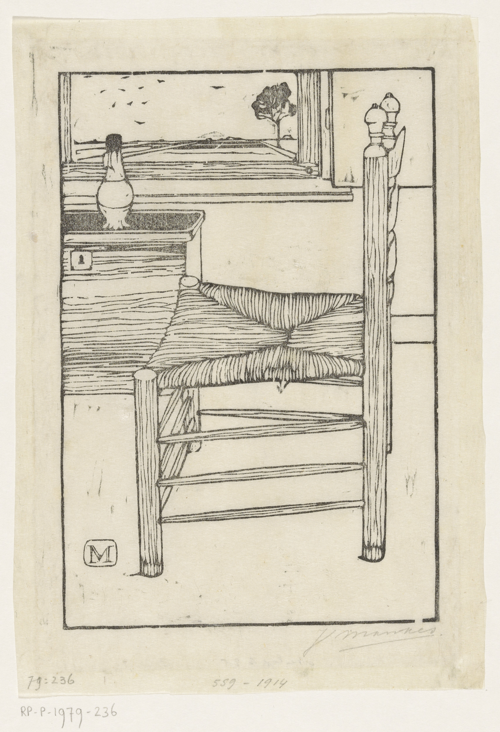 Stoel met biezen zitting