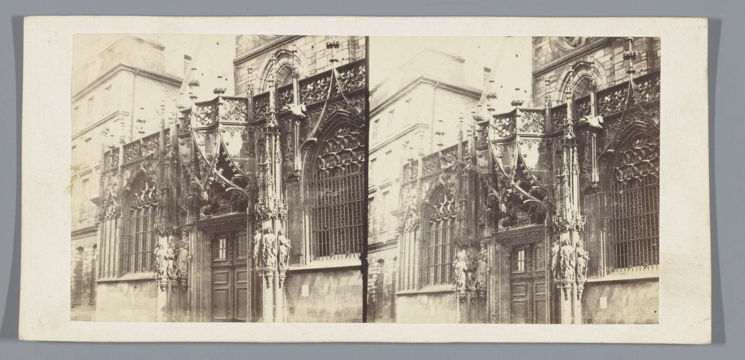 Gezicht op een portaal van de Notre-Dame van Straats...