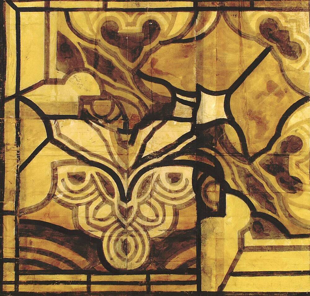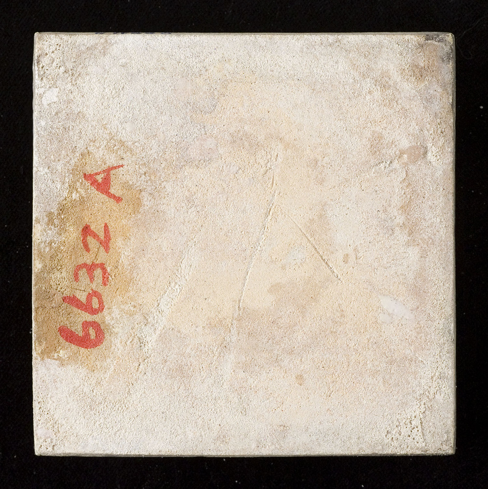 Tegel in tinglazuur, met voorstelling: Gestileerde k...