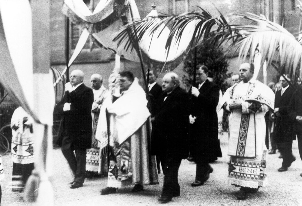 Zwart-wit foto van hoogwater in Lobith in 1920
