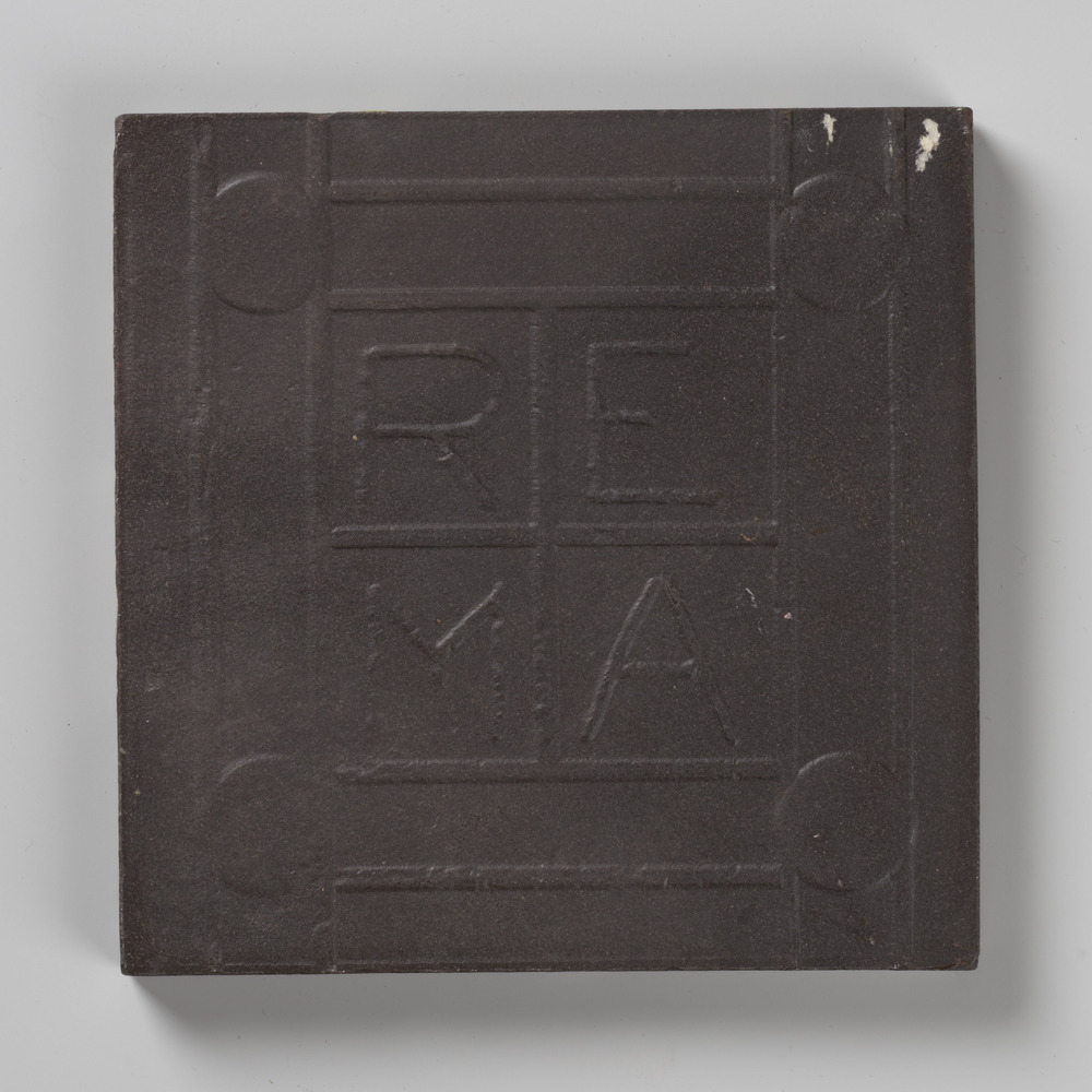 Tegel in druktechniek, met voorstelling: kachel met ...