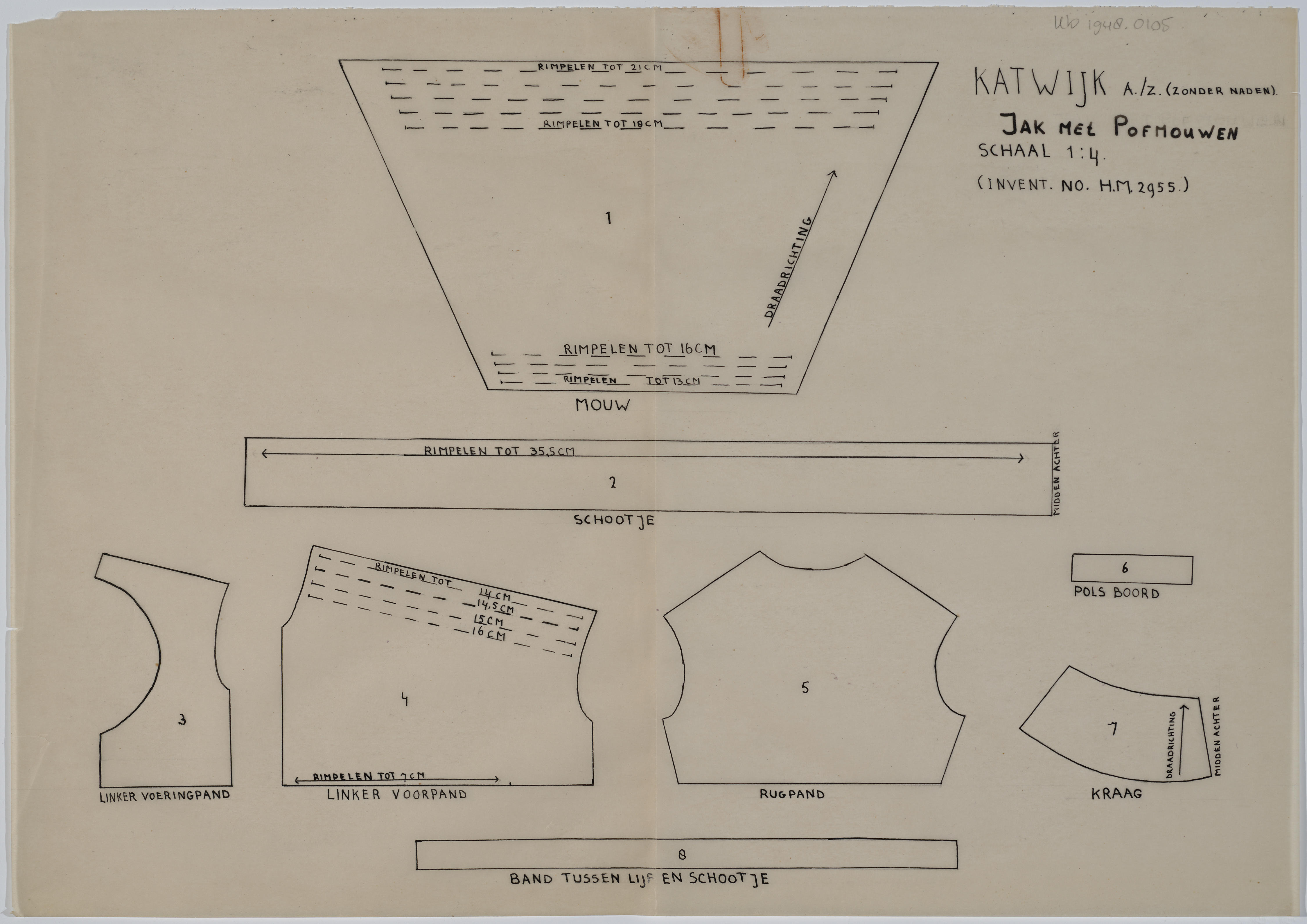 Patroontekening jak met pofmouwen, vrouw Katwijk (pa...