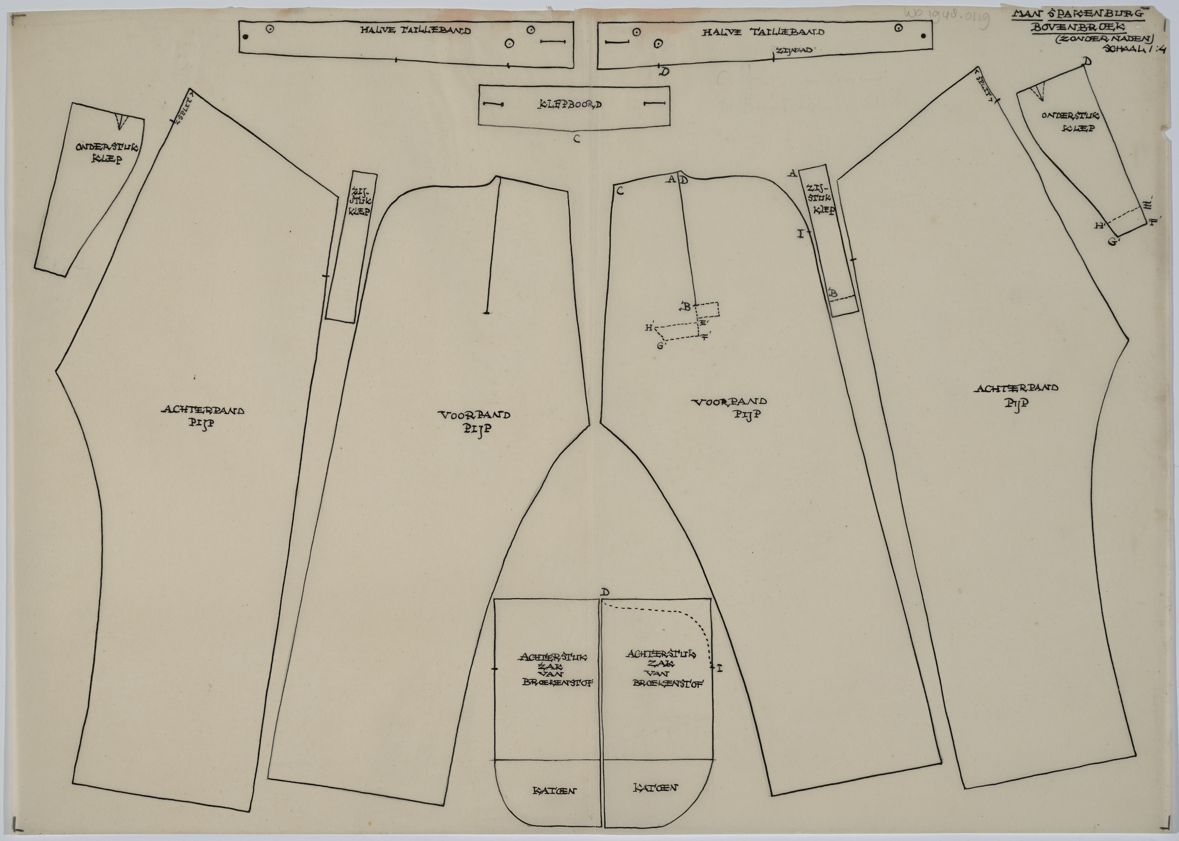 Patroontekening bovenbroek, man Spakenburg (patroont...