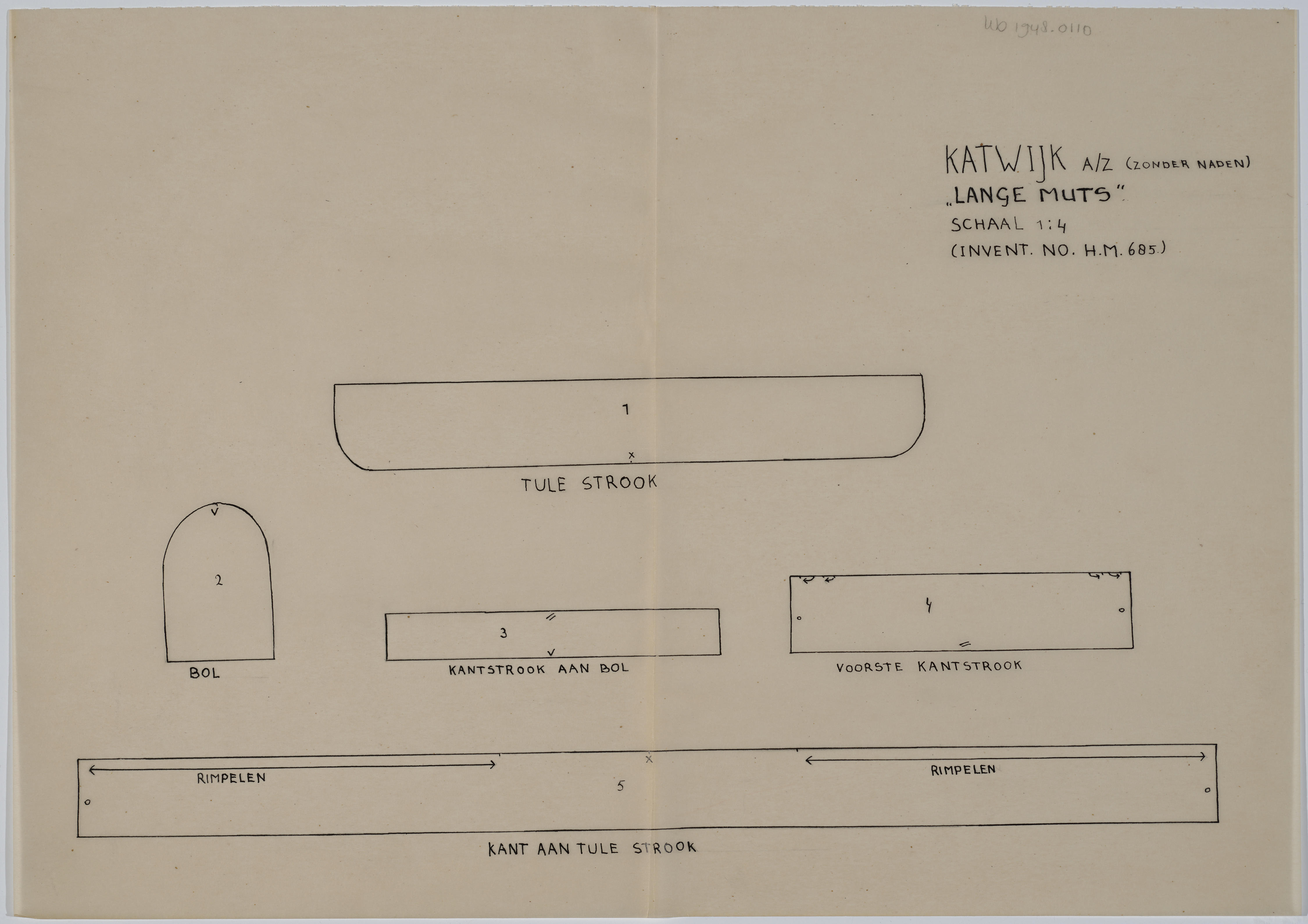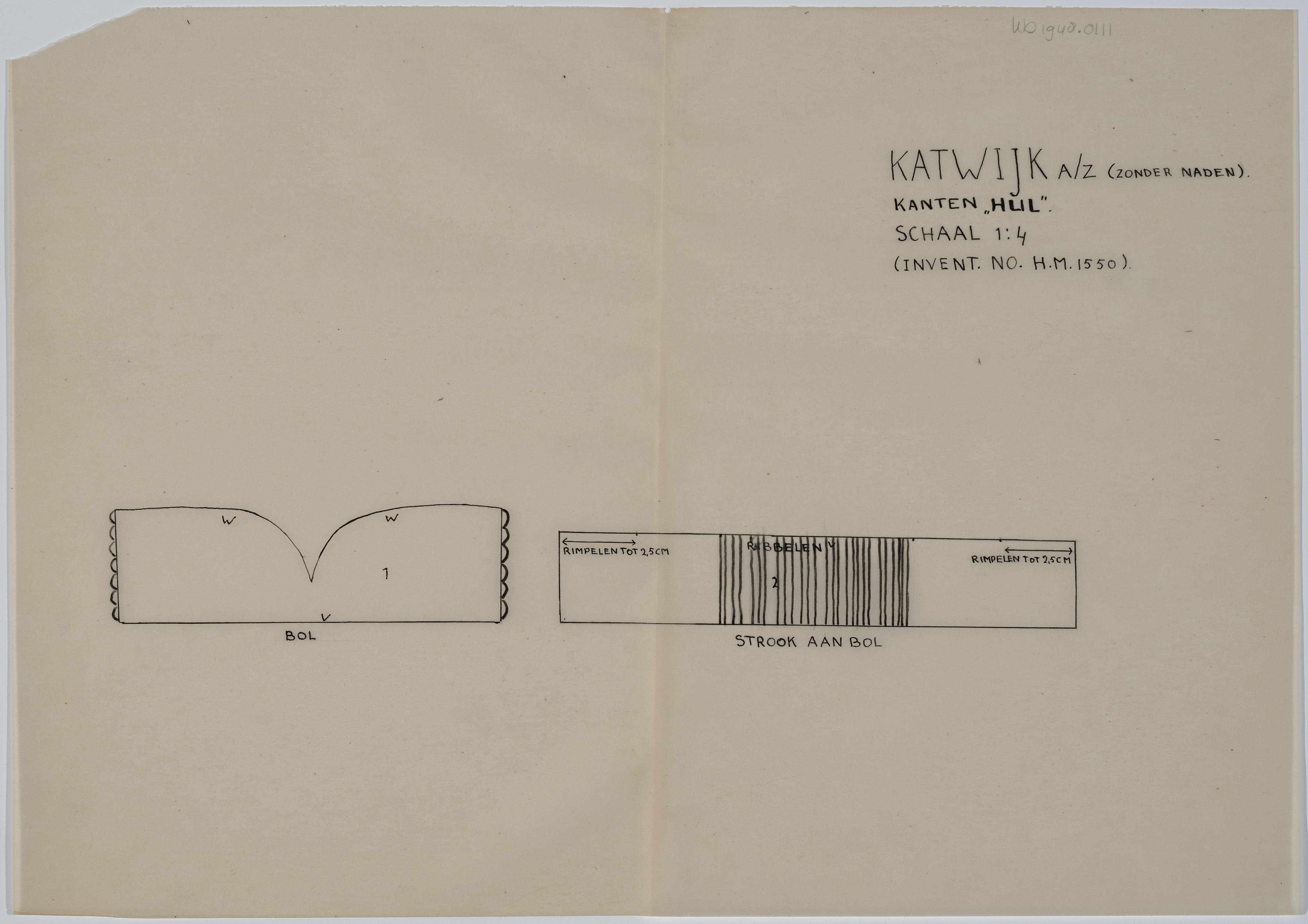 Patroontekening lange muts, vrouw Katwijk (patroonte...