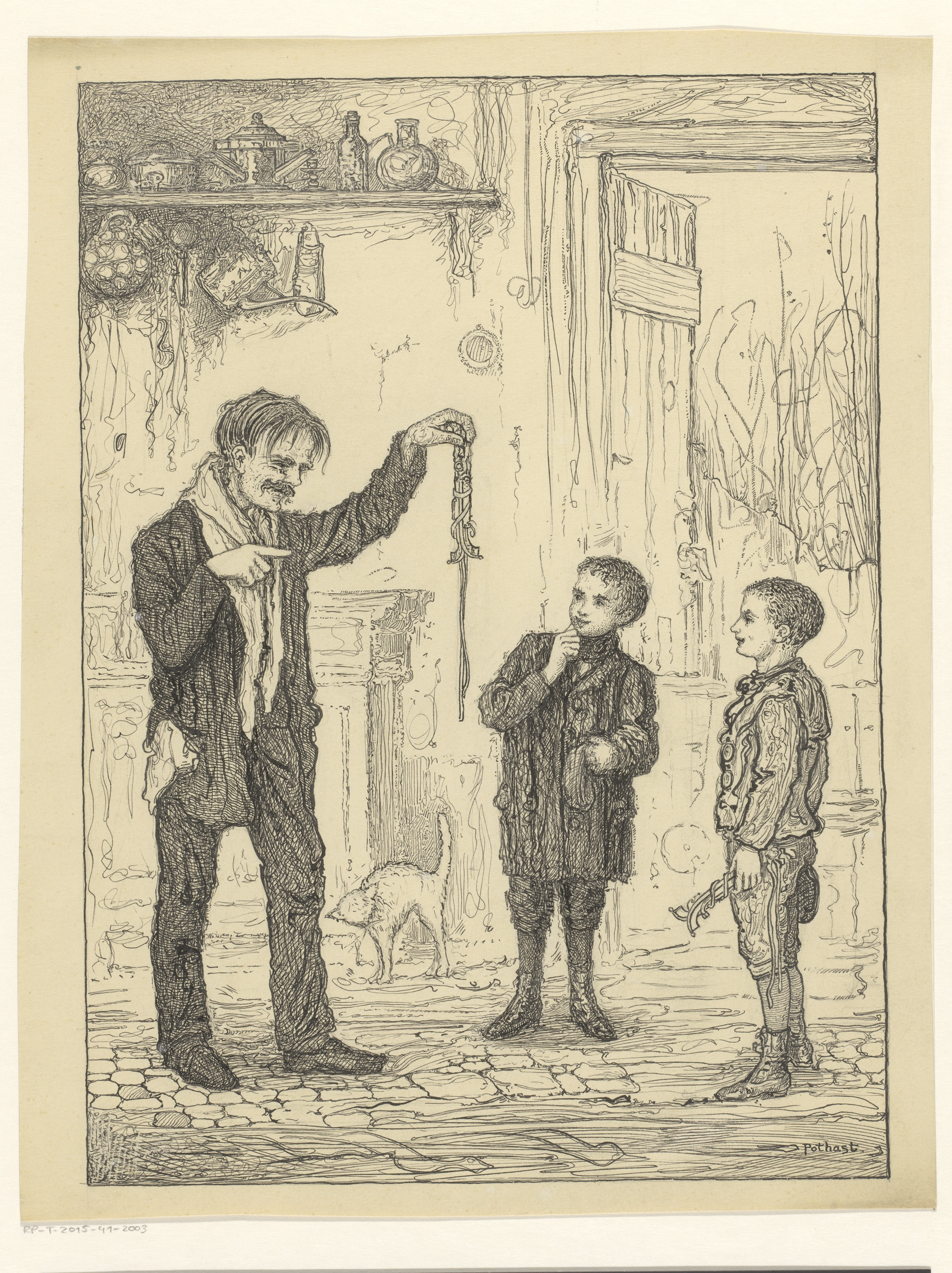 Jongens bij een man met schaatsijzers