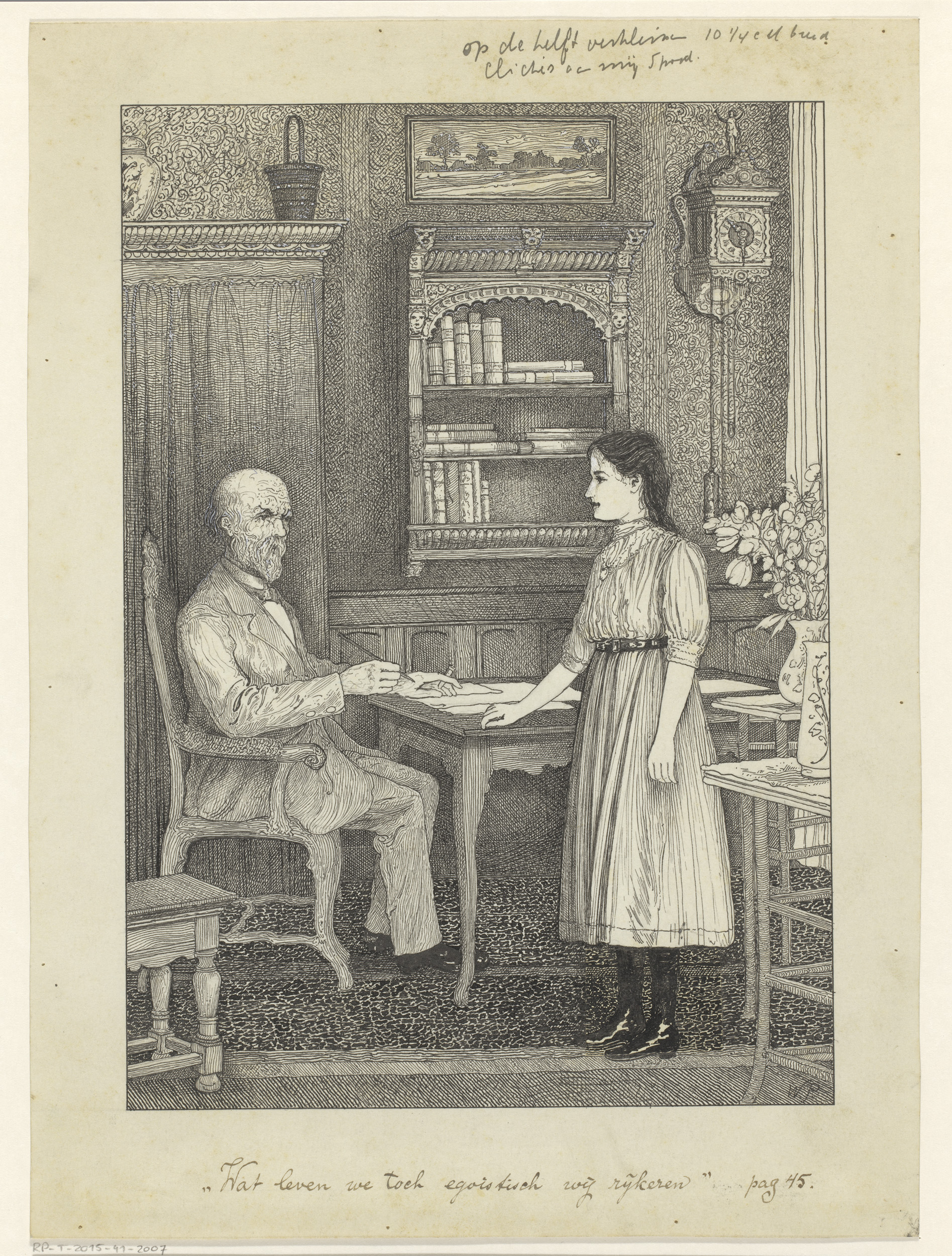 Meisje en schrijvende man bij een tafel