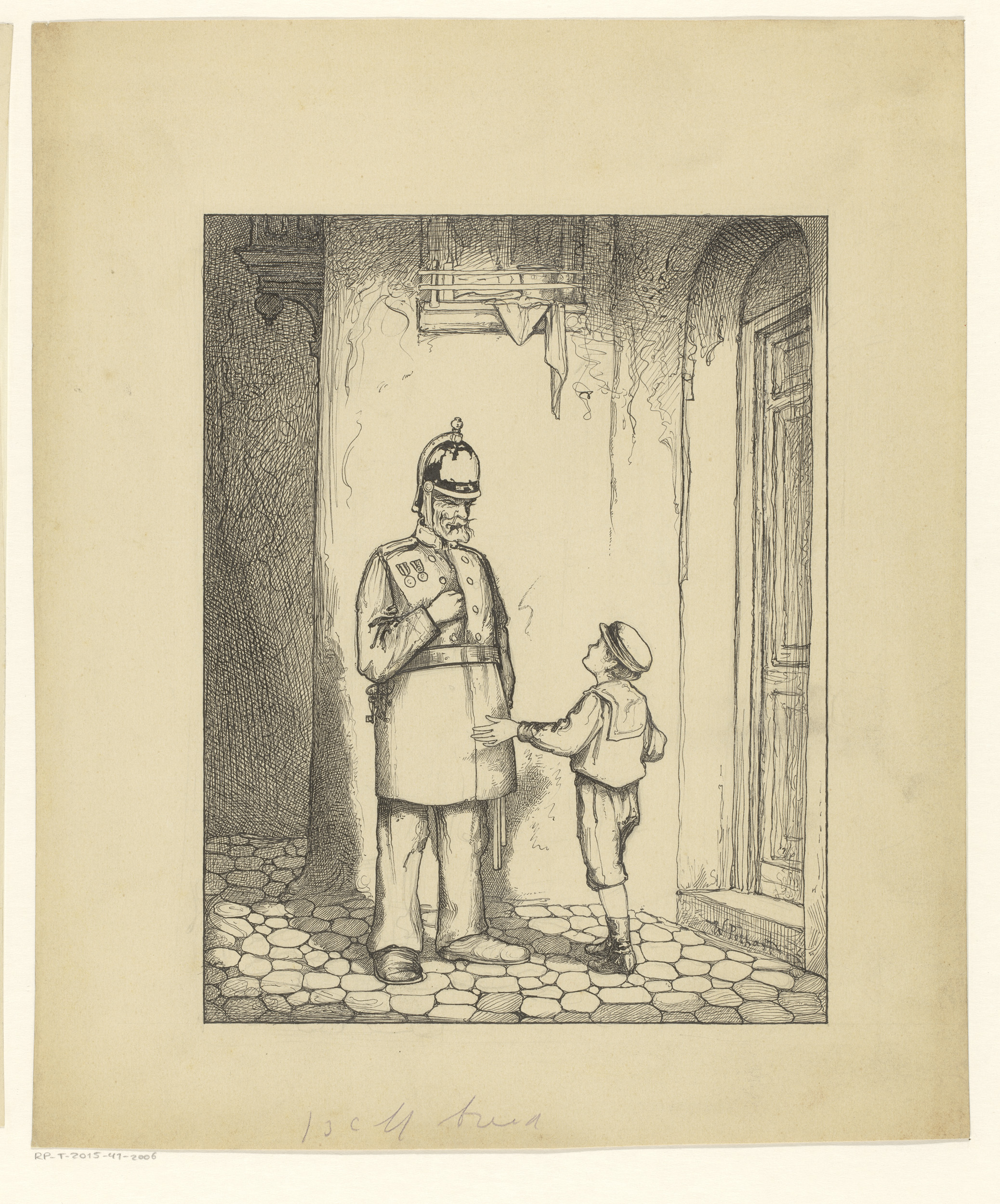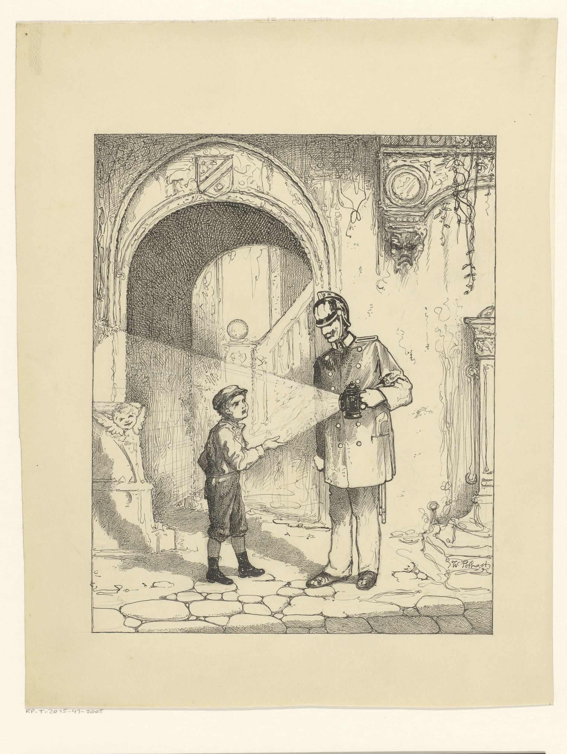 Jongen en politieman bij een deur