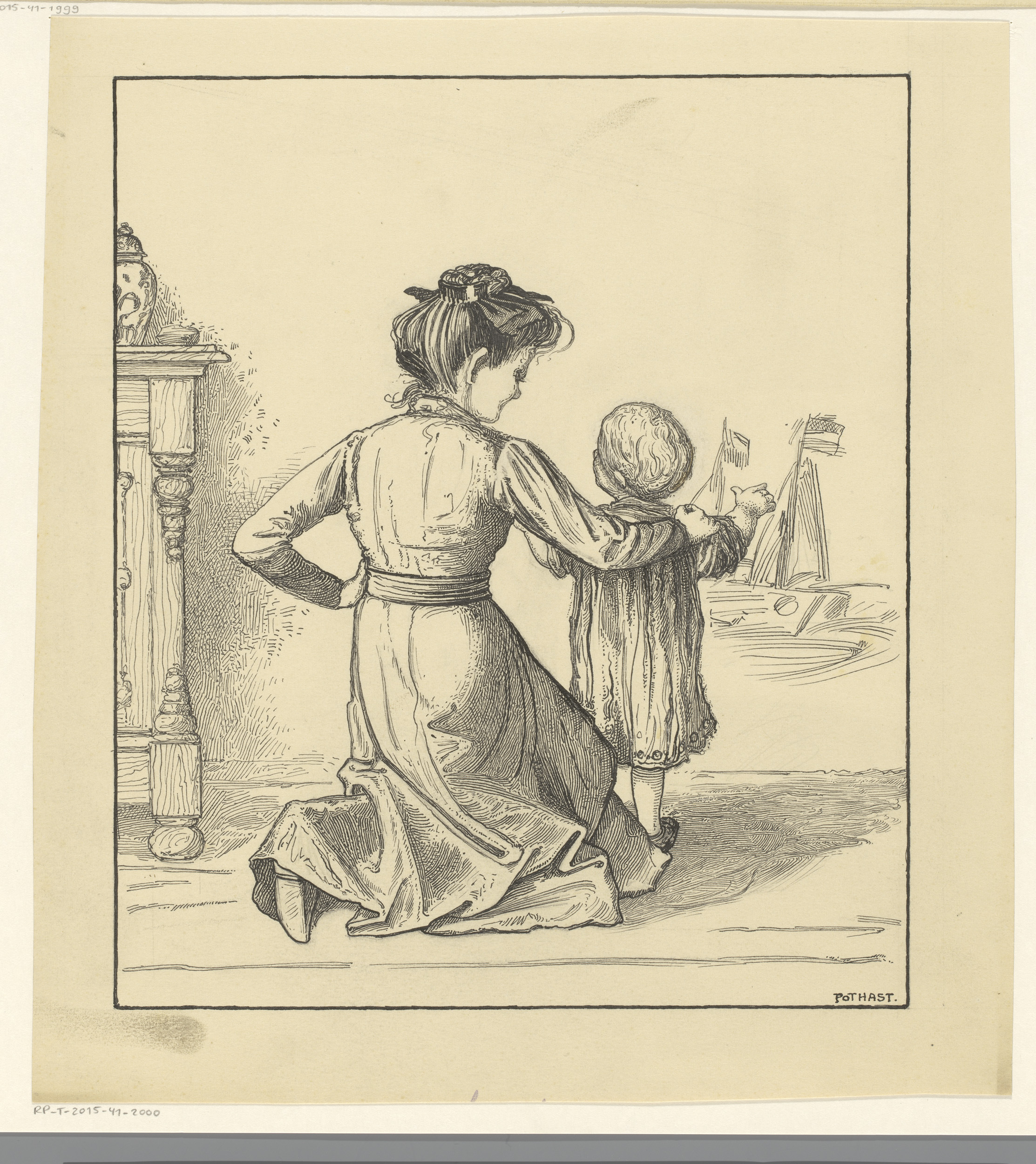 Moeder en kind bij een muur