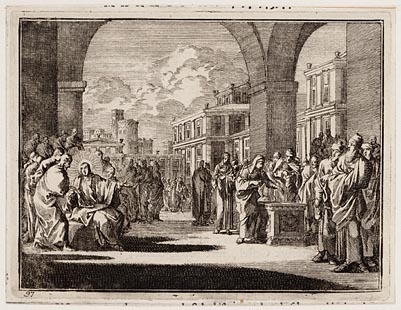 Jezus wijst zijn discipelen op de weduwe die haar la...