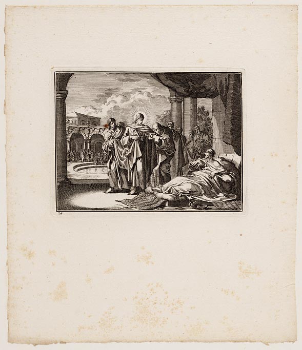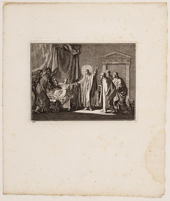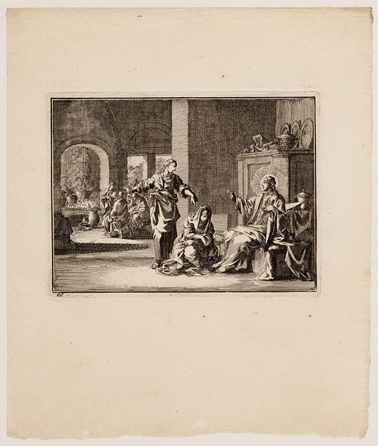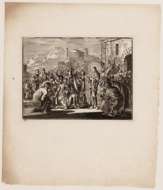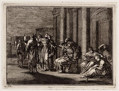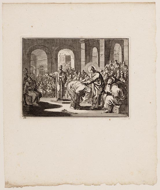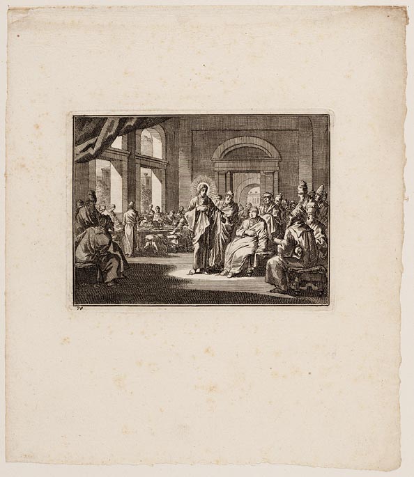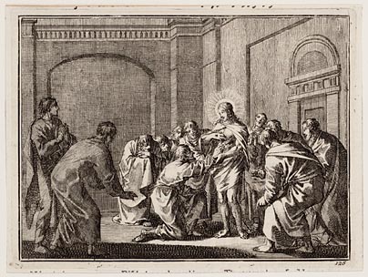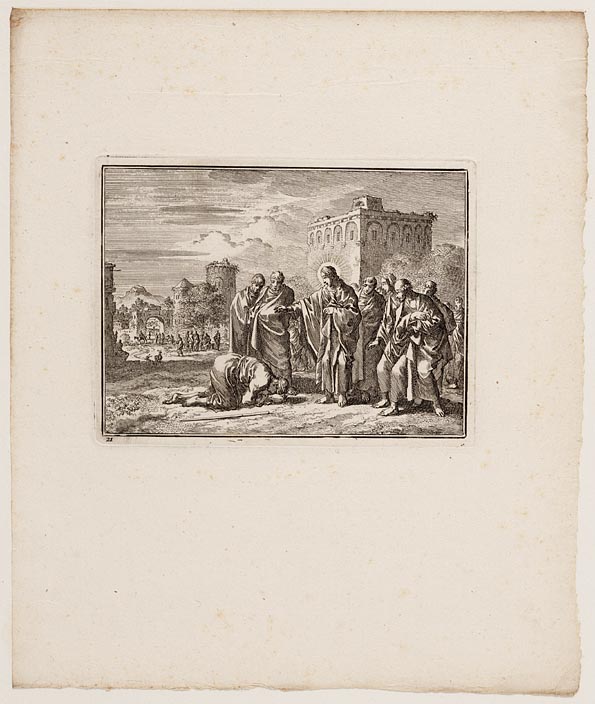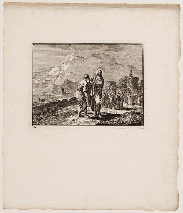 Jezus straft Petrus, die zich voor hem plaatst, en w...