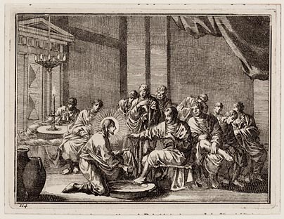 Jezus in huis te Bethanië, waar Maria aan zijn voete...