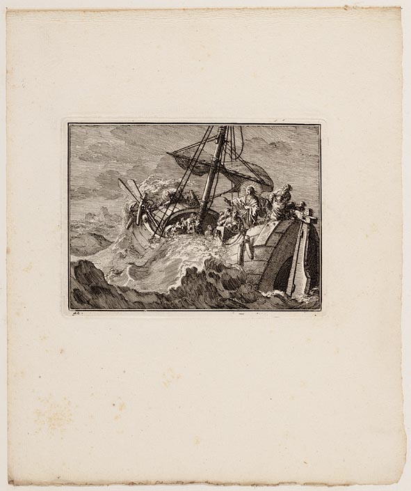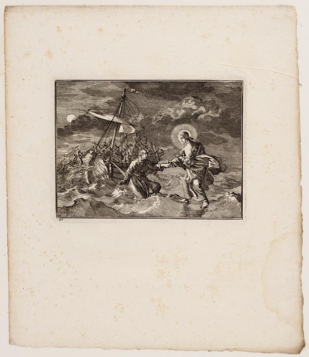 Jezus loopt over de zee en richt de zinkende Petrus op