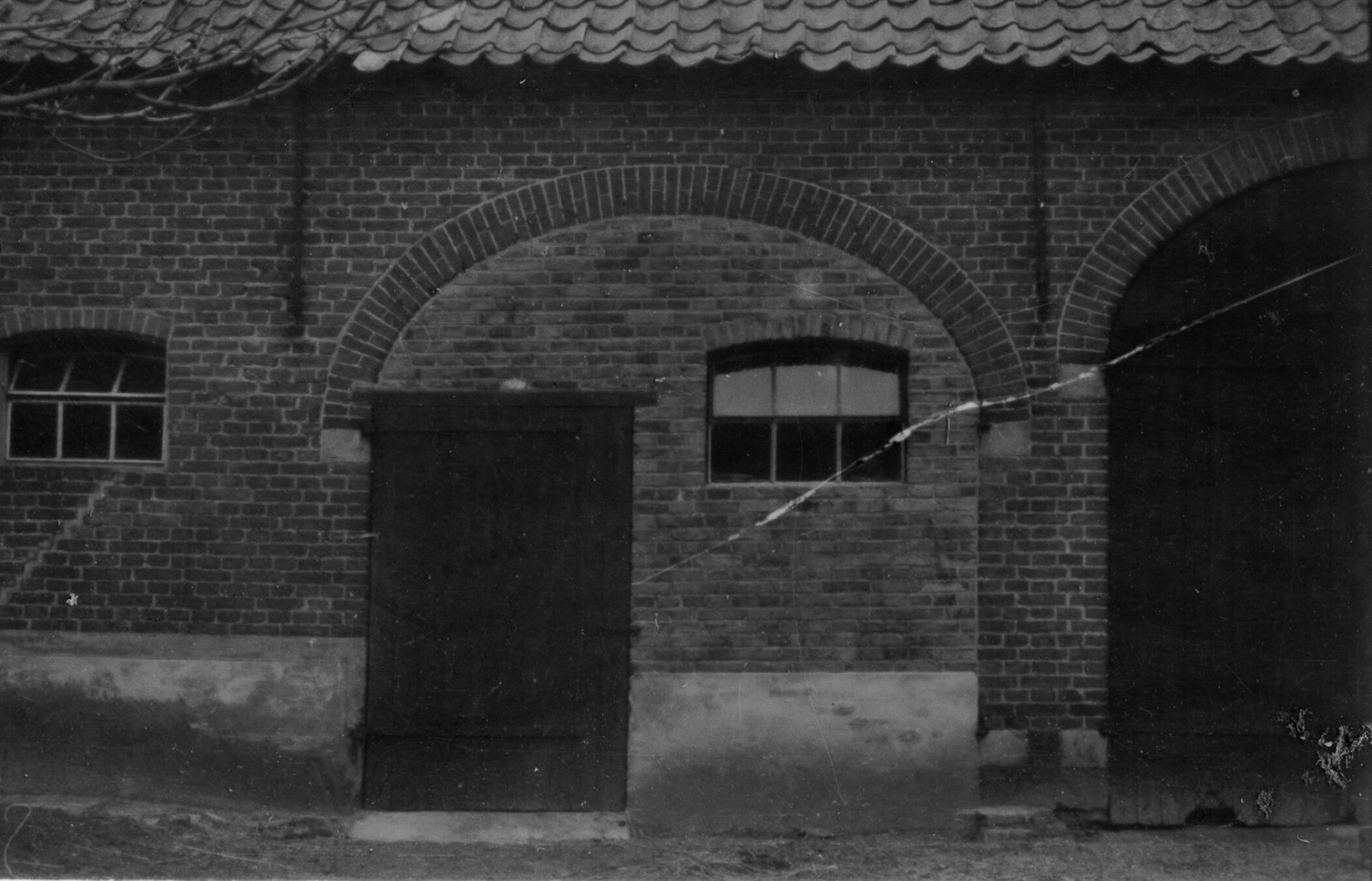 Ingang van de schuur, Belgeren, 1940 (zwart-wit foto)
