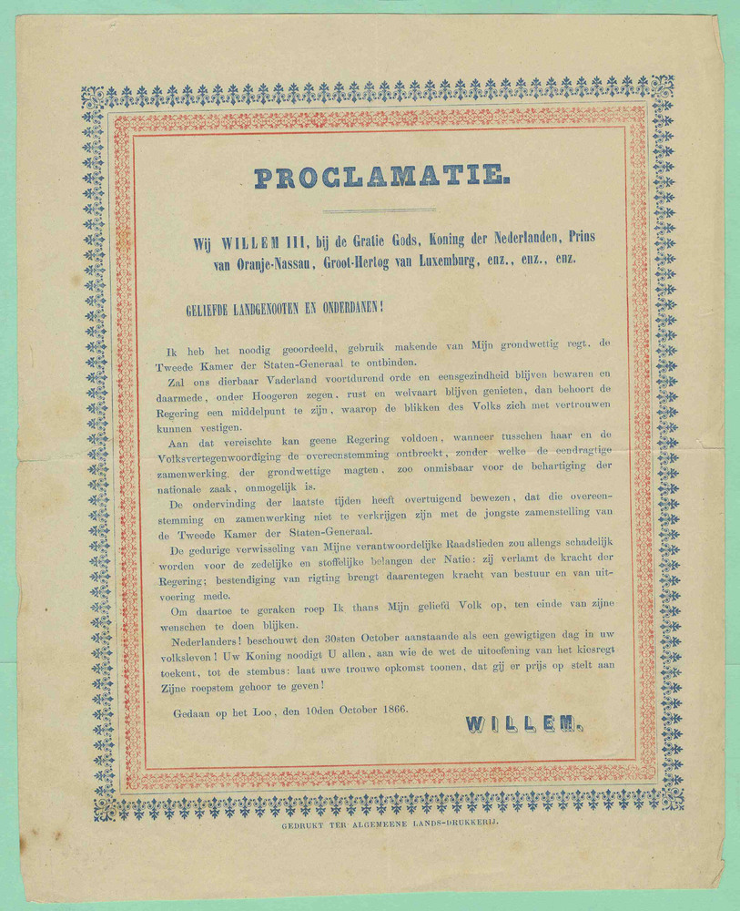 proclamatie Willem III over de ontbinding van de Twe...
