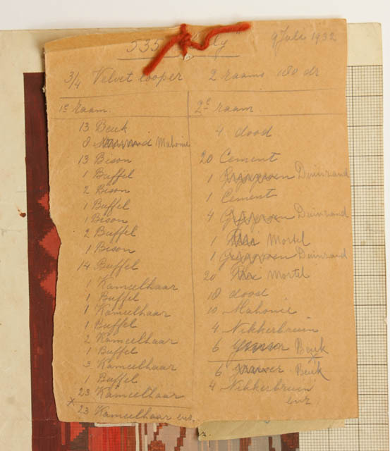 Ontwerptekening voor tapijt "Twijg", op achterkant a...