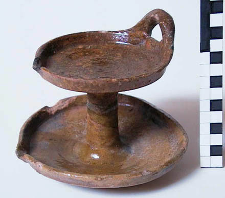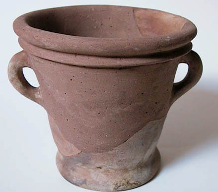 Steengoed trechterbeker met lintoor op gewelfde stan...