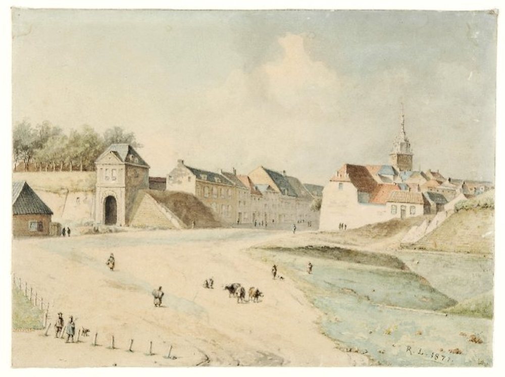 Gezicht op de Nijmeegse Molenpoort en Molenstraat ti...