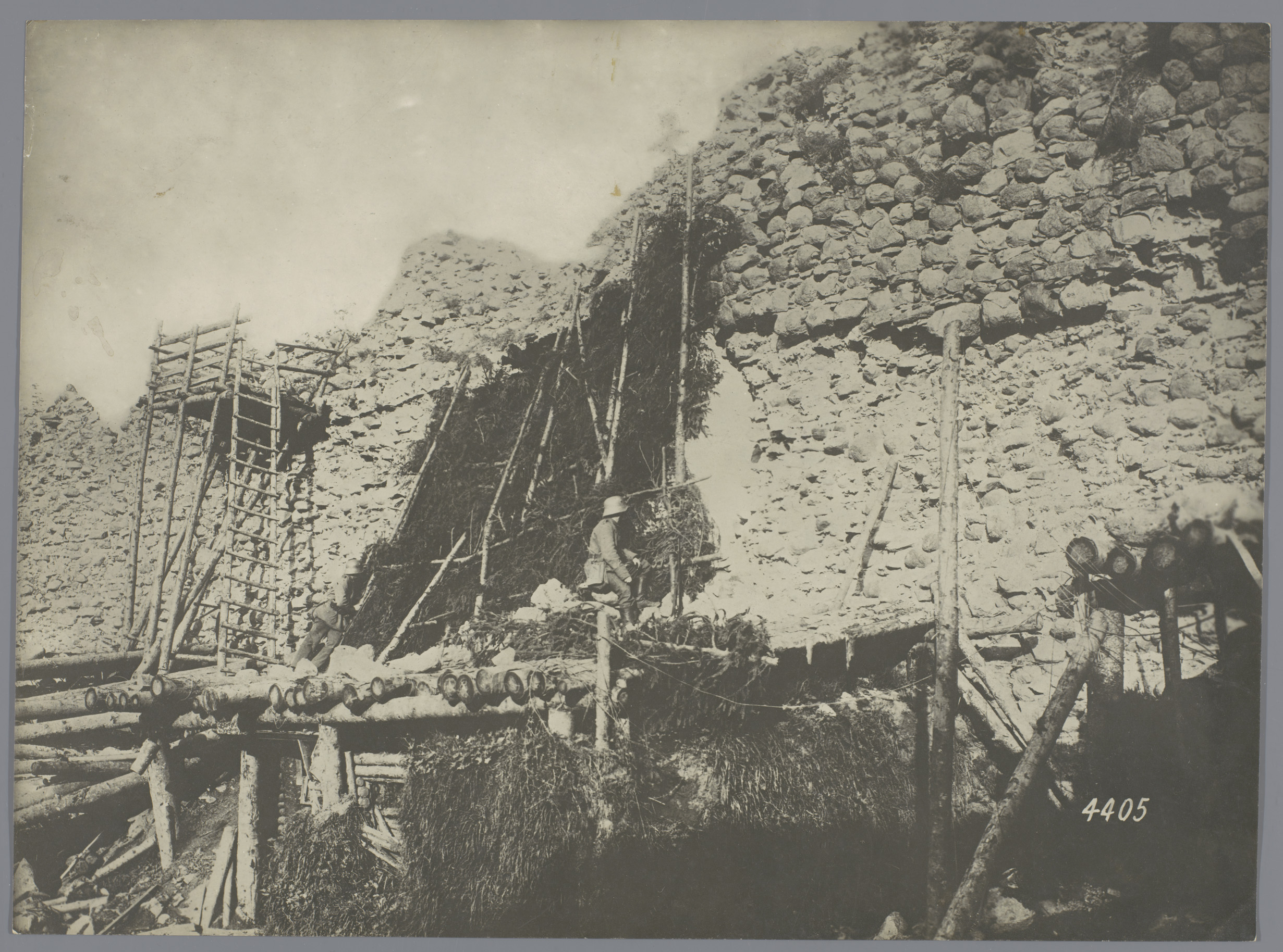 Duitse soldaten achter verdedegingswerken