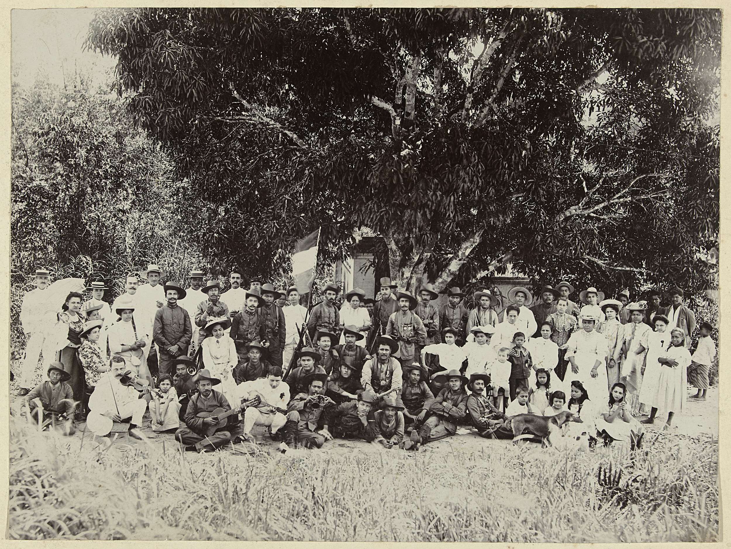 Groepsportret van onbekende KNIL-militairen, met man...