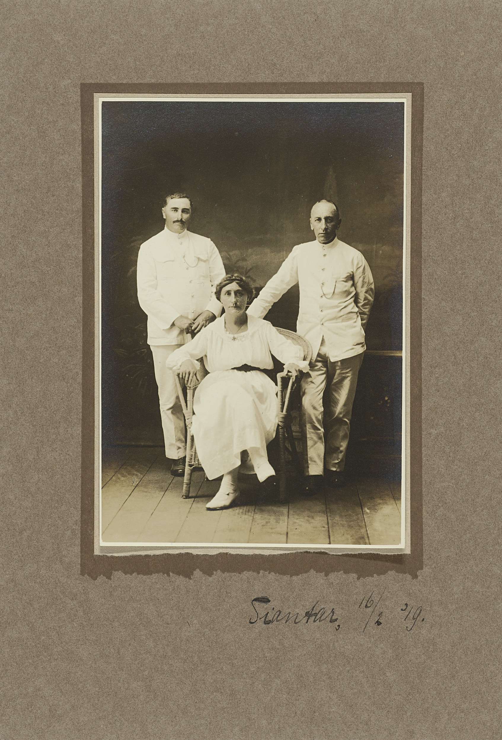 Studioportret van twee onbekende mannen en een onbek...