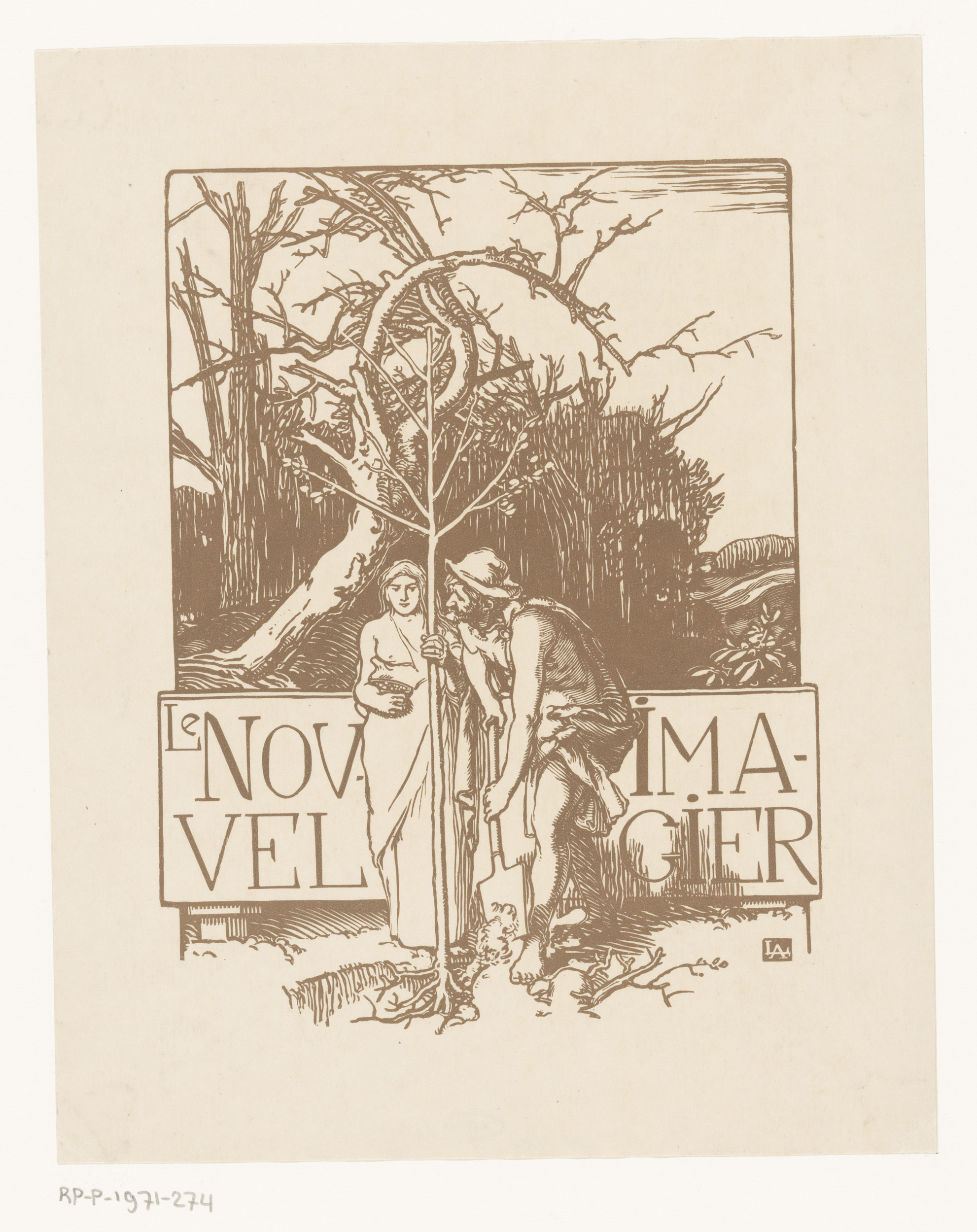Man en vrouw naast gevleugelde figuur