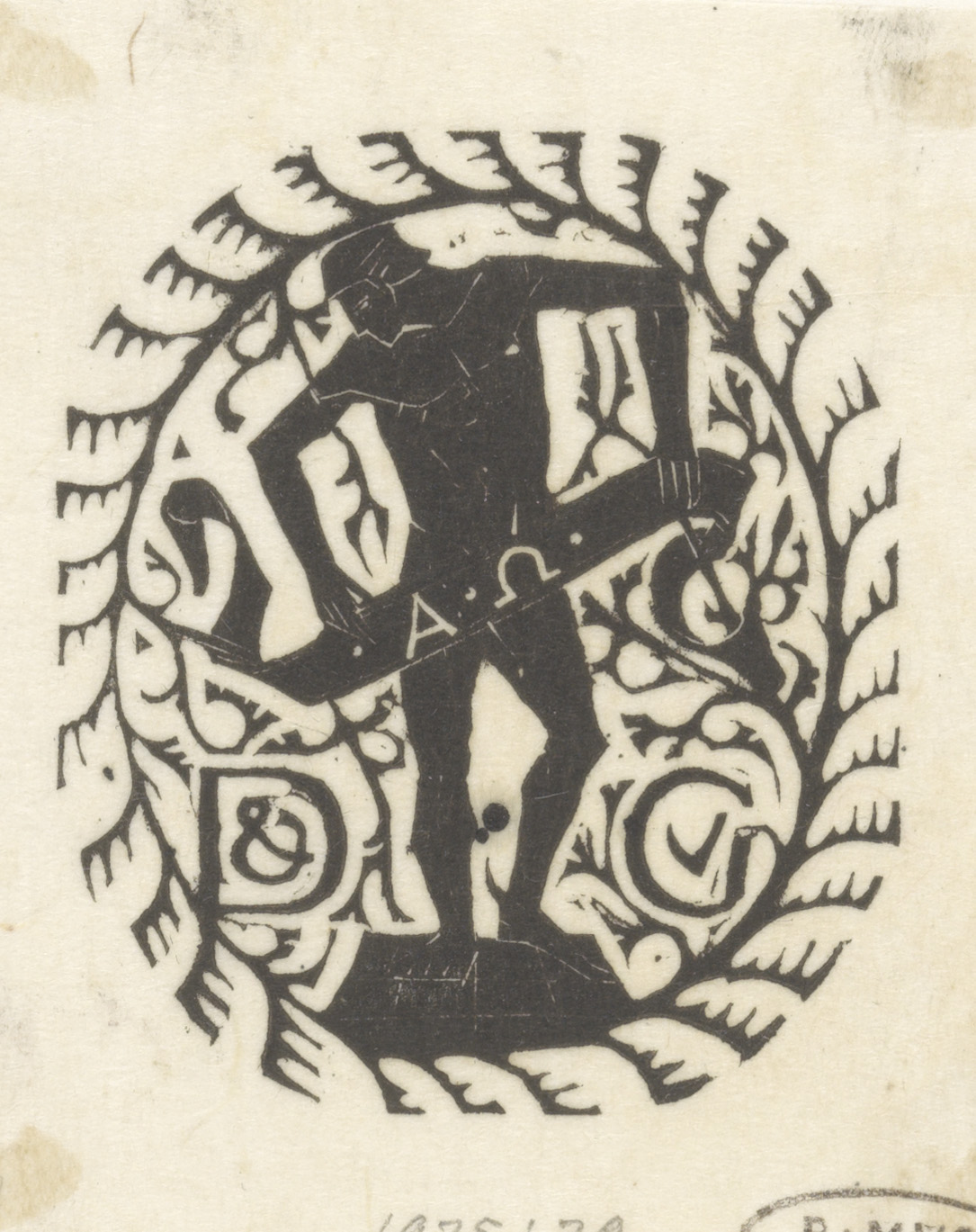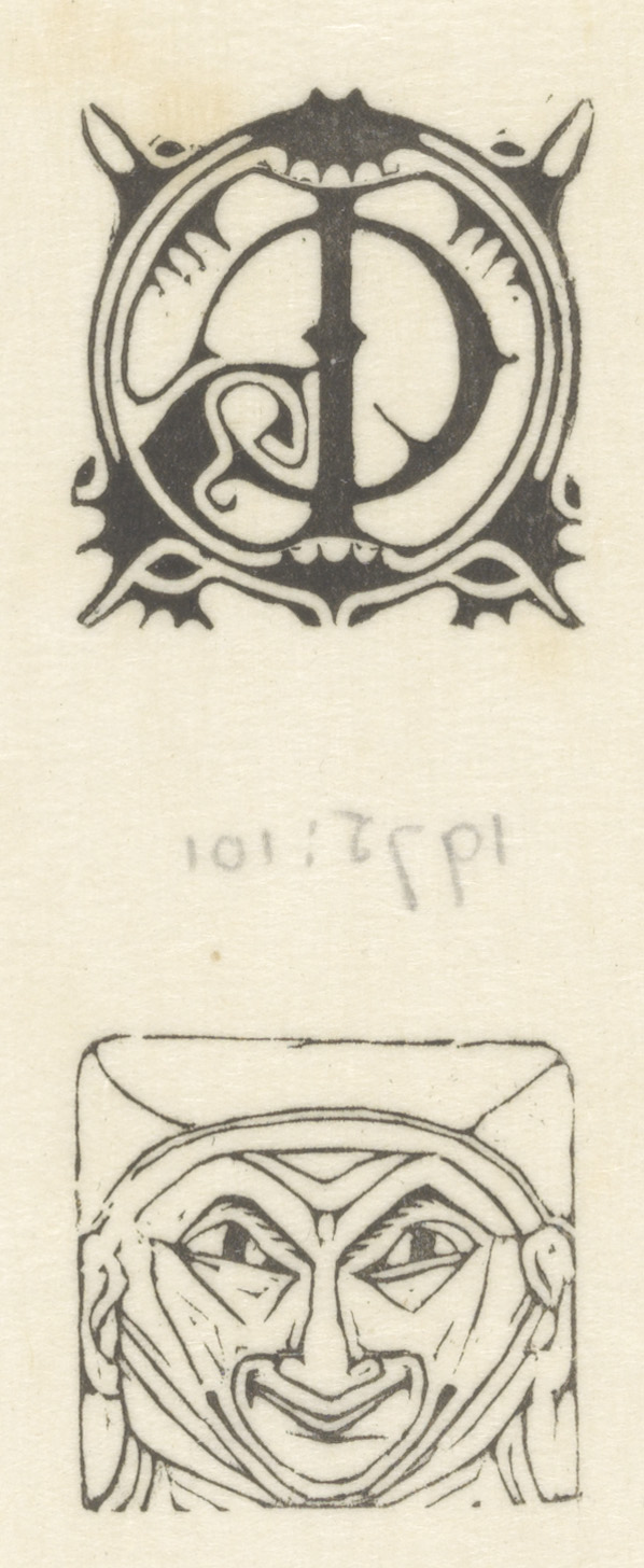 Monogram en vignet met masker