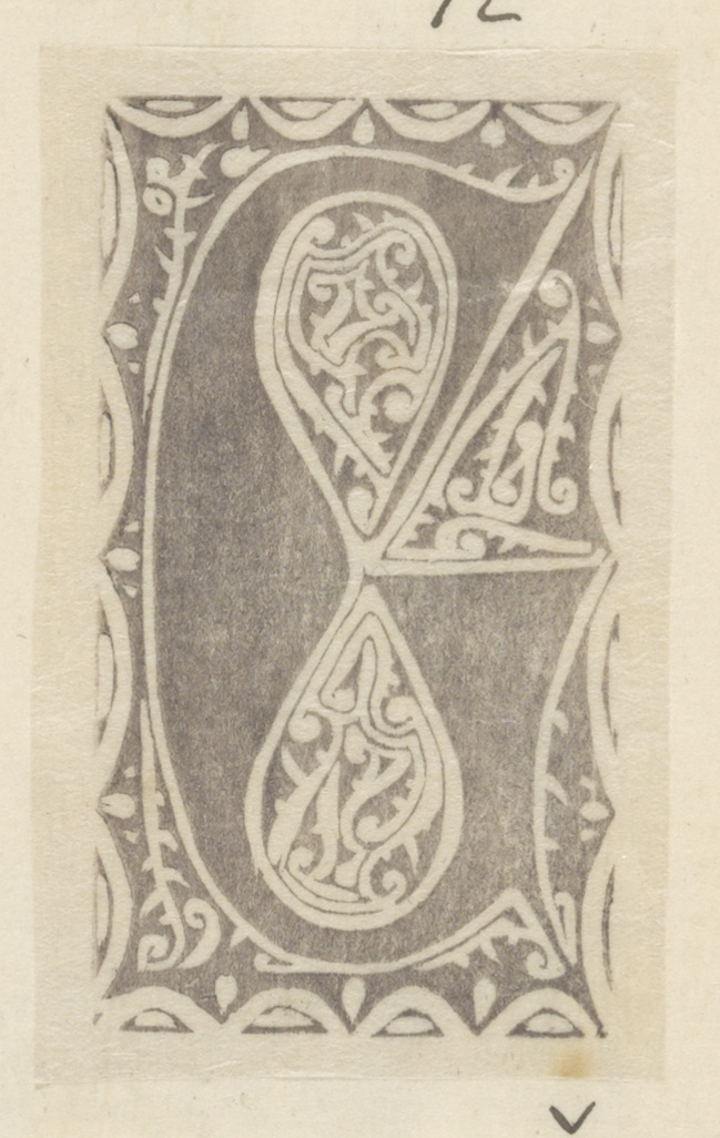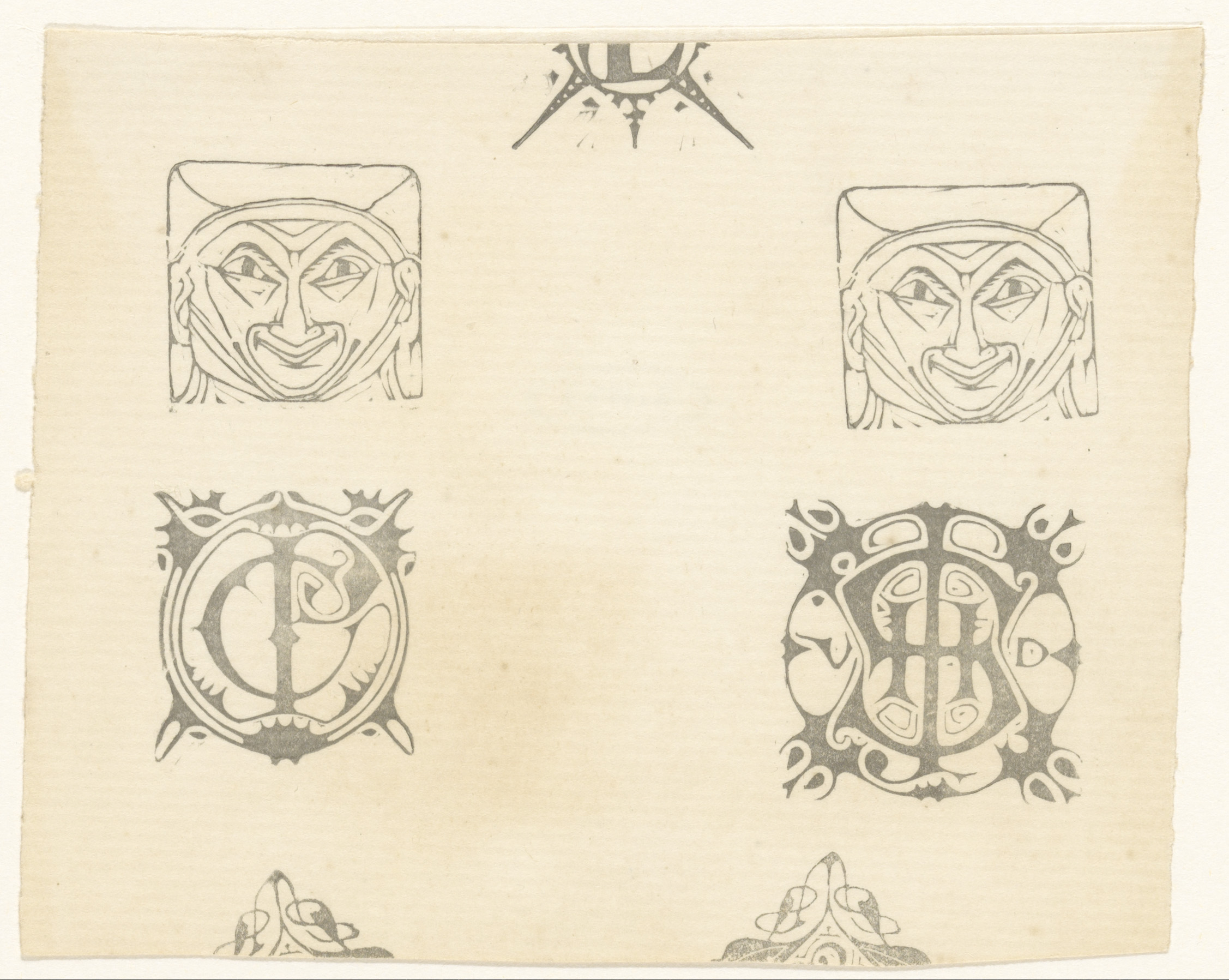 Blad met twee vignetten en twee monogrammen