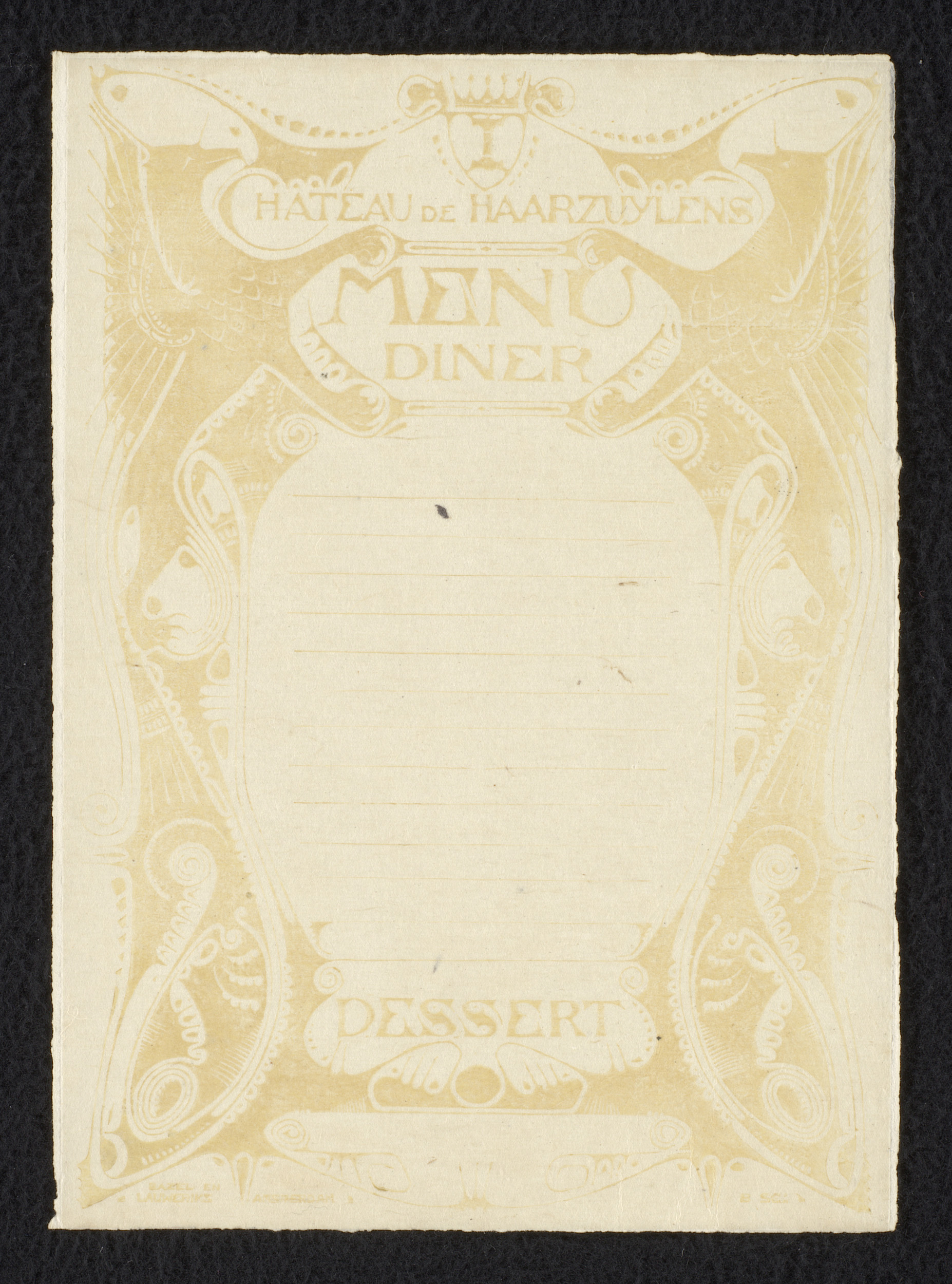 Menukaart Château de Haarzuylens diner en dessert
