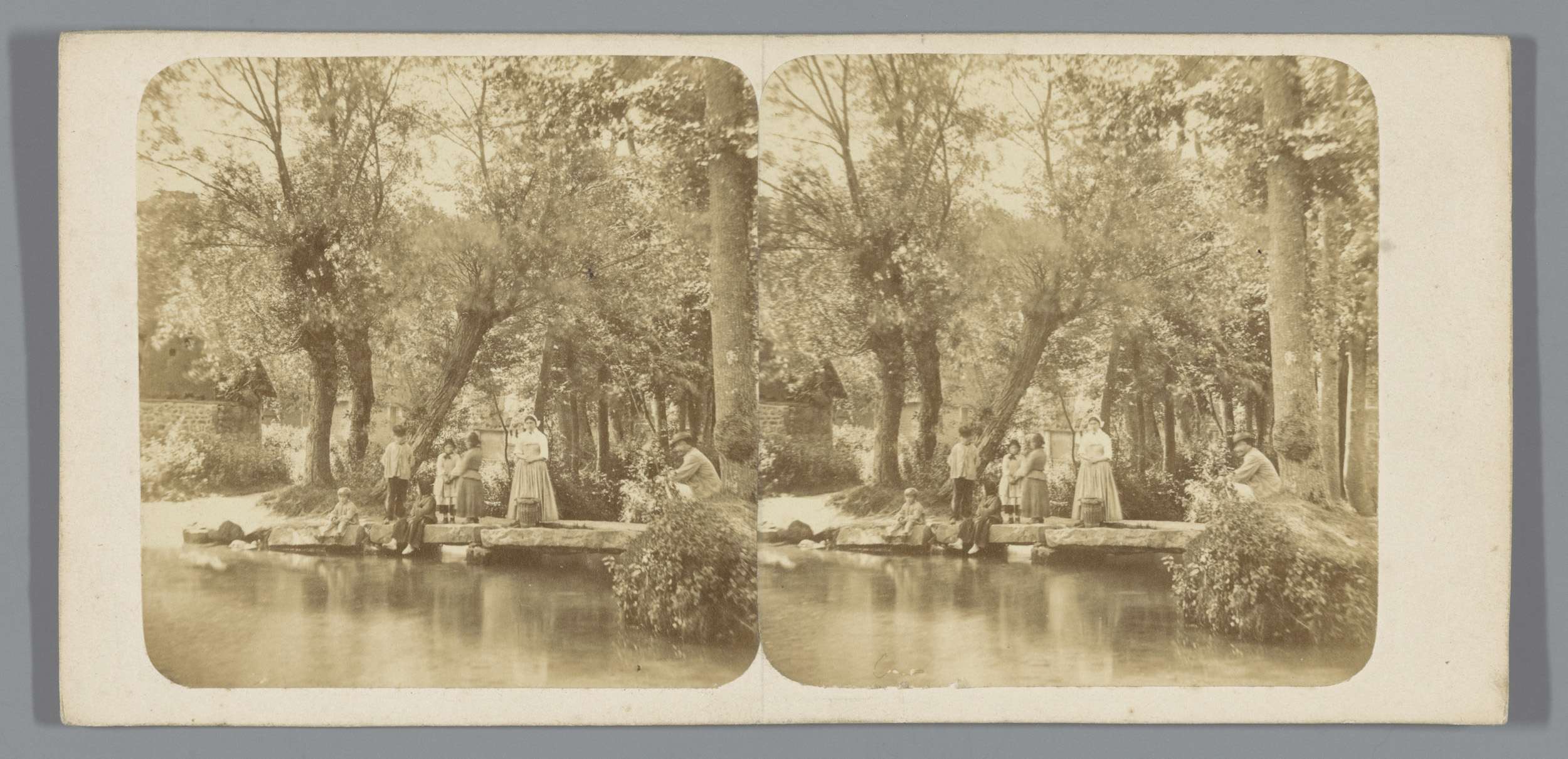 Personen langs de oever van de Veules