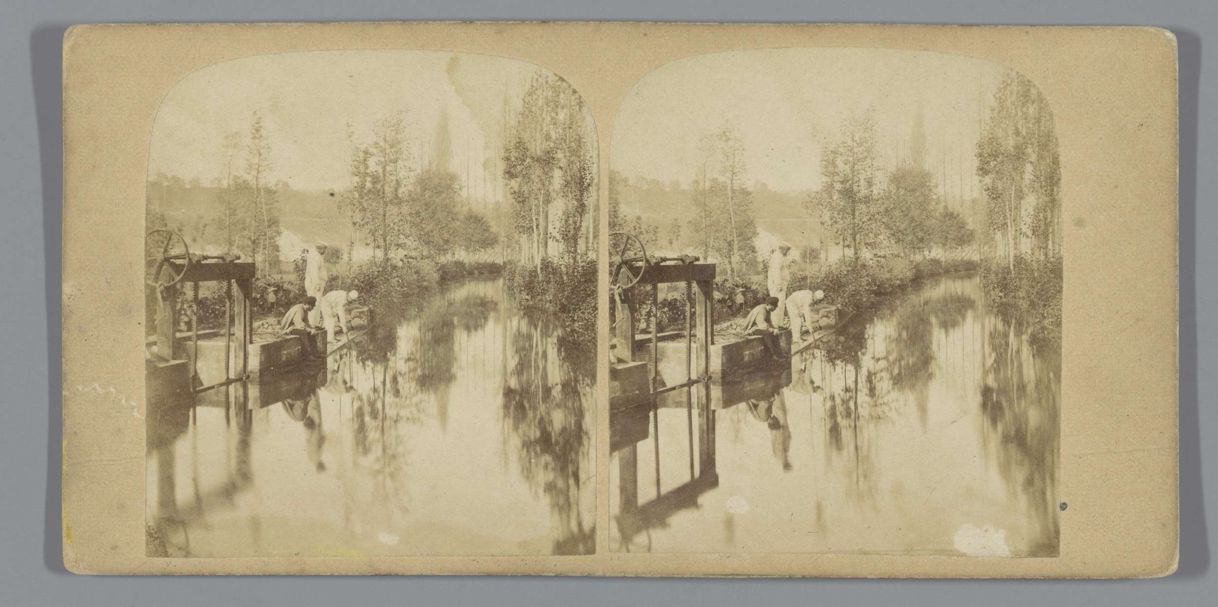 Mannen naast een sluis (vermoedelijk) te Frankrijk