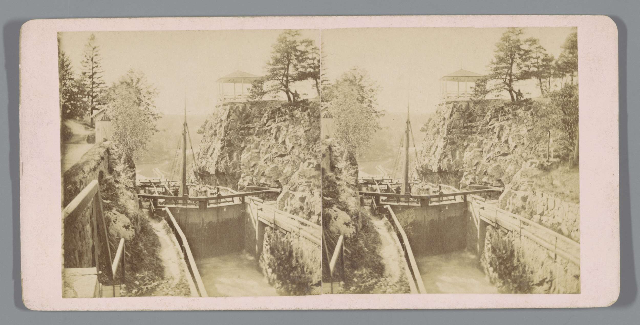 Schip in een sluis (vermoedelijk) te Frankrijk